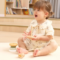 Glatte, sorgfältig geschliffene Holzteile und ein stabiler Sockel ermöglichen sicheres Spielen bereits ab 12 Monaten. Angenehme Pastellfarben laden zum Stapeln und Entdecken ein.