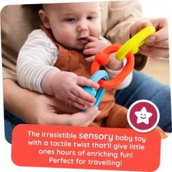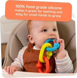 Jeder Ring lässt sich leicht verbinden und trennen – ideal zur Förderung der Feinmotorik, der Hand-Auge-Koordination und für freies Spiel. Dank der kompakten Größe von 8 cm passt er in den Kinderwagen, den Autositz und ist perfekt für unterwegs.