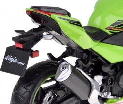 Verkleidung mit kontrastierenden Grafiken, detailgetreue Bremsscheiben, Spiegel und Instrumententafel bilden die echte NINJA 400 originalgetreu nach. Ein großartiges Stück für jede Sammlung.