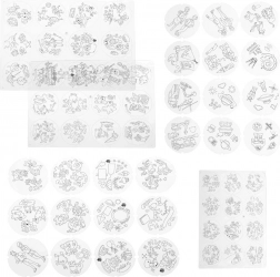 Im Set enthalten sind 6 Bögen mit je 12 Bildern – Tiere, Gegenstände und saisonale Motive zum Nachzeichnen, Ausmalen und Formenlernen.