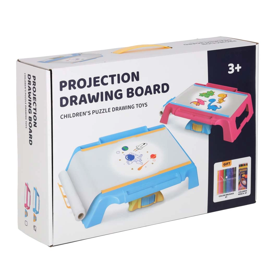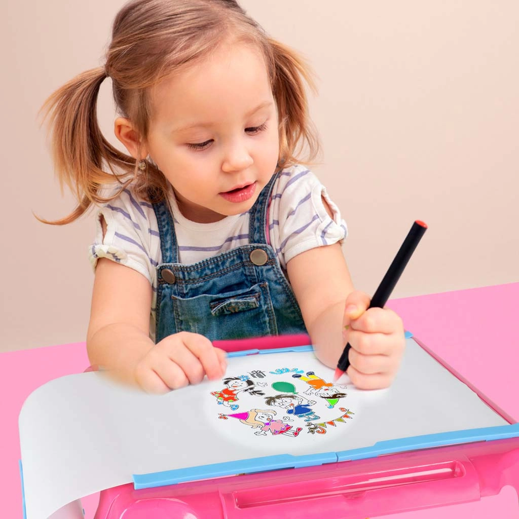 Rosa Kinder-Zeichentisch mit Projektor und Papierrolle