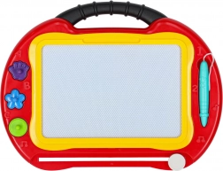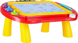 Fördern Sie Kreativität und Feinmotorik der Kinder mit der vielseitigen magnetischen 2-in-1-Tafel. Sie dient als stabiler Tisch für bequemes Sitzen und als leichte, tragbare Tafel mit Griff. Kinder können malen, erste Buchstaben und Zahlen schreiben und Stempel mit interessanten Formen verwenden – alles ohne Papier und ohne Flecken.