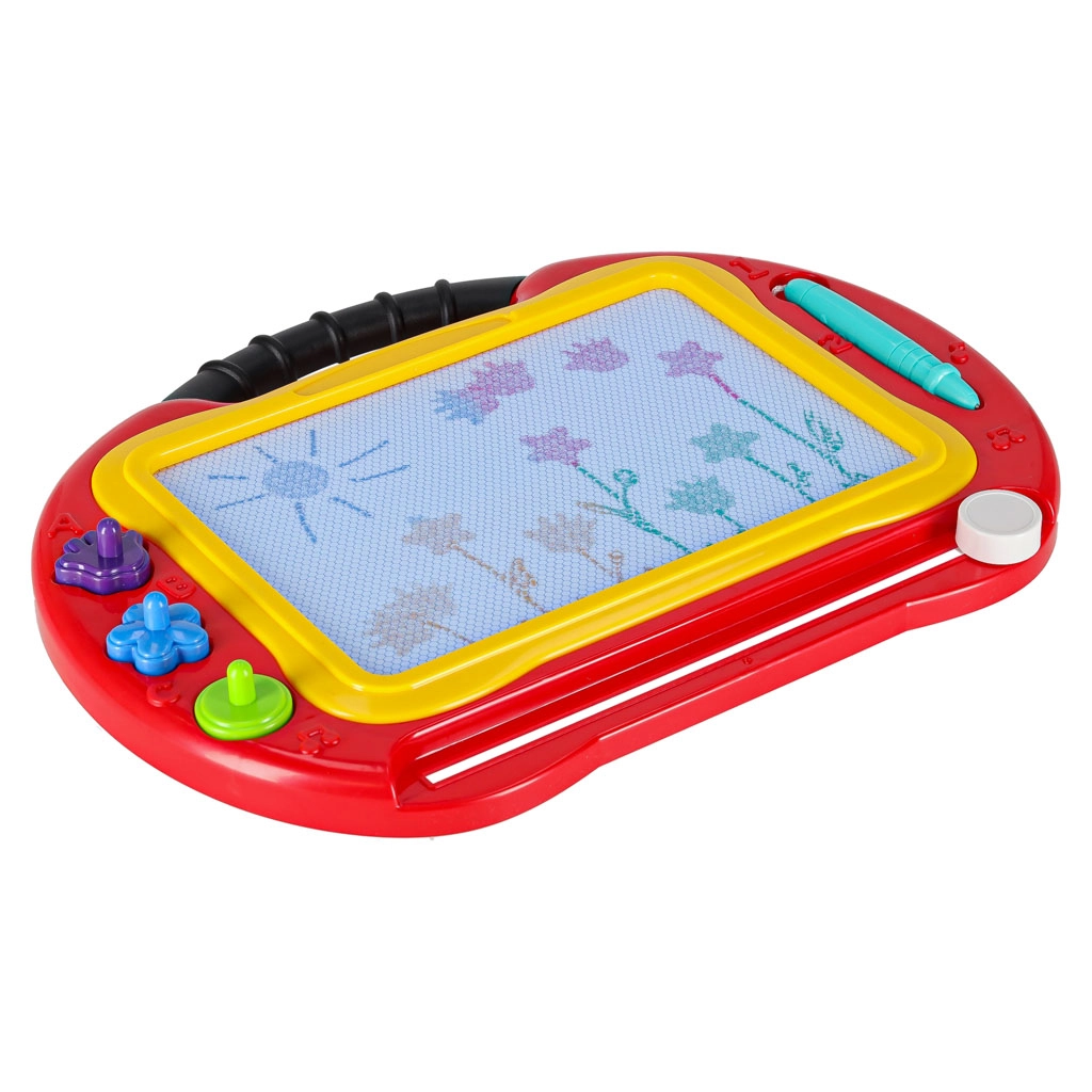 Der magnetische Bildschirm zeigt vier Farben an und lässt sich mit einem Zug des Schiebers komplett reinigen. Ideal für endloses Malen, Schreiben und Lernen.