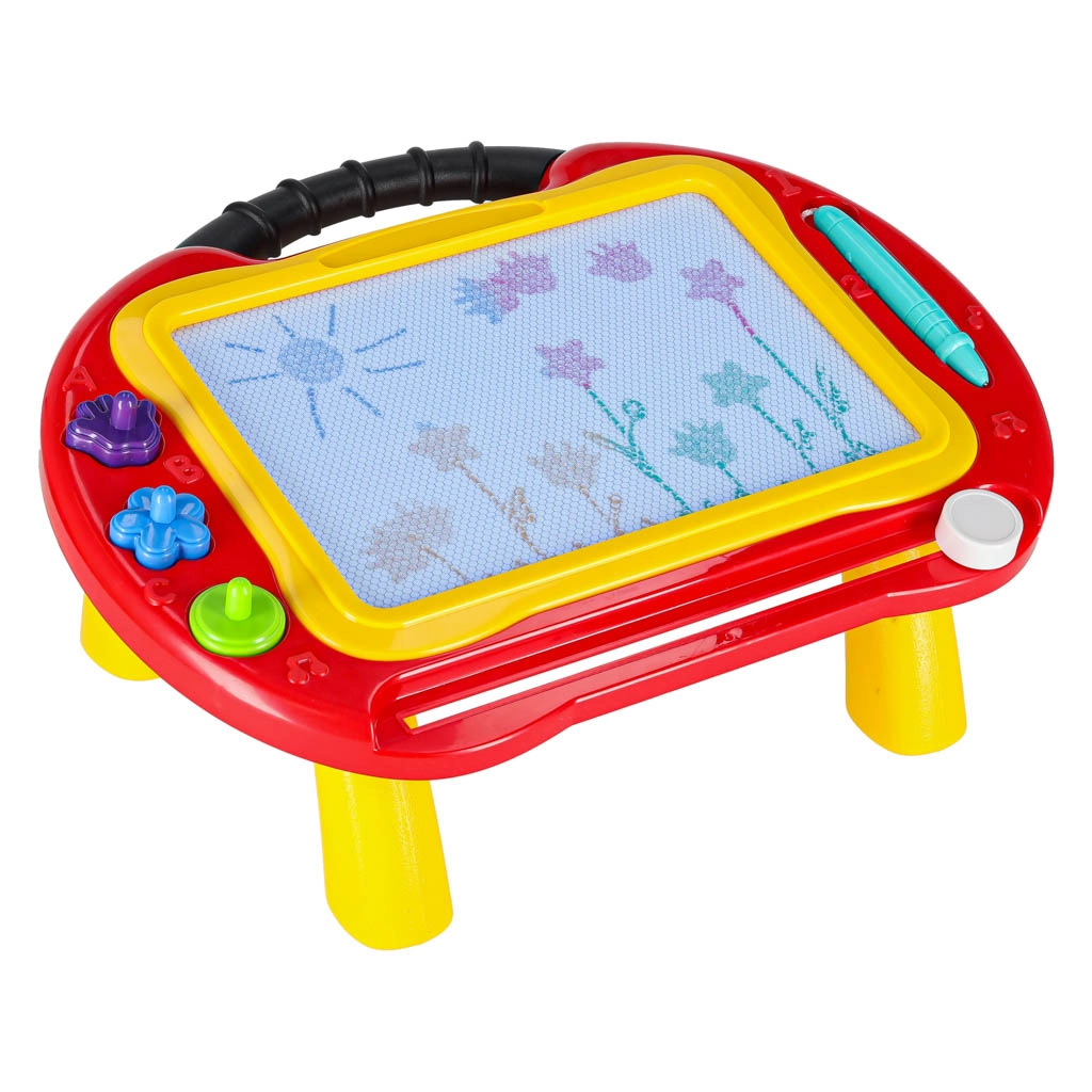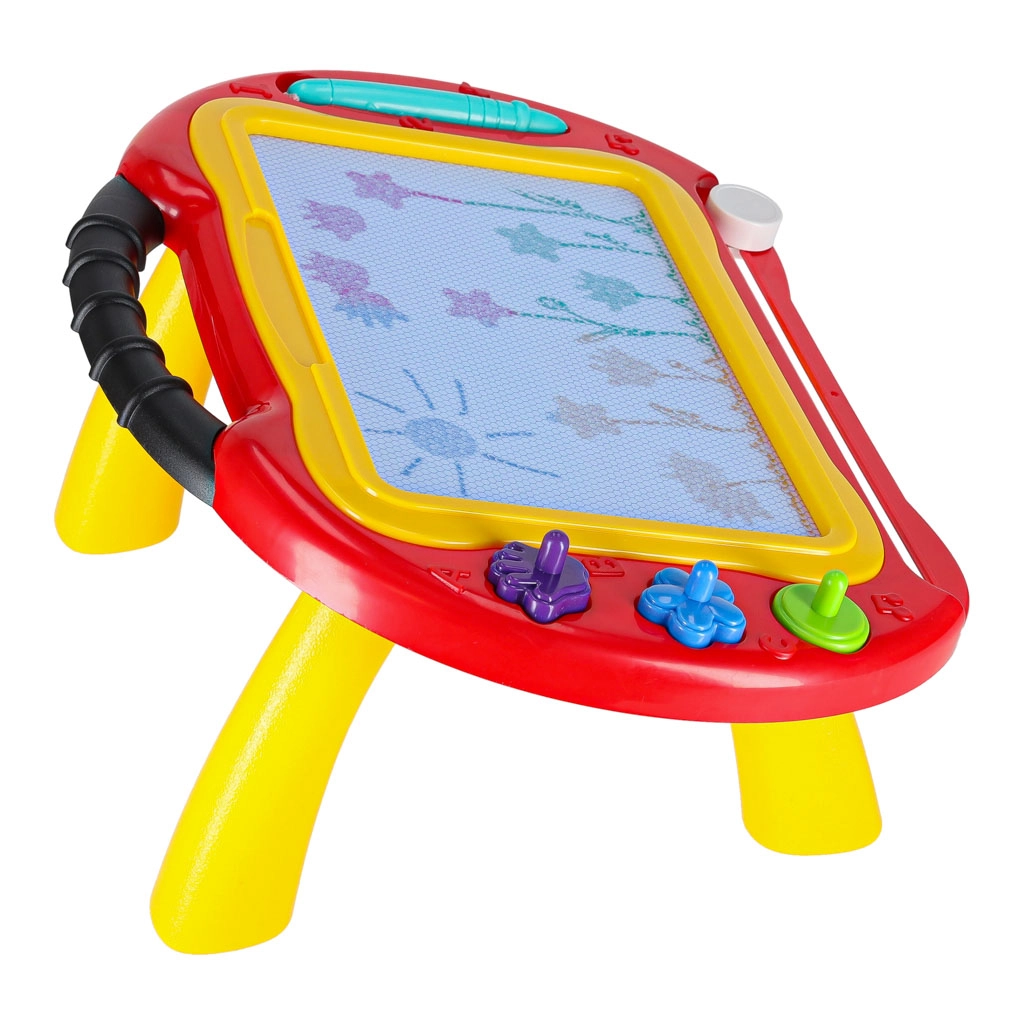 Der Bildschirm zeigt 4 Farben für lebendige Bilder, die sich mit einer Bewegung des Lösch-Schiebers reinigen lassen. Der Stylus an der Schnur geht nicht verloren und die abnehmbaren Beine ermöglichen Spielen überall – im Kinderzimmer, Wohnzimmer oder unterwegs.