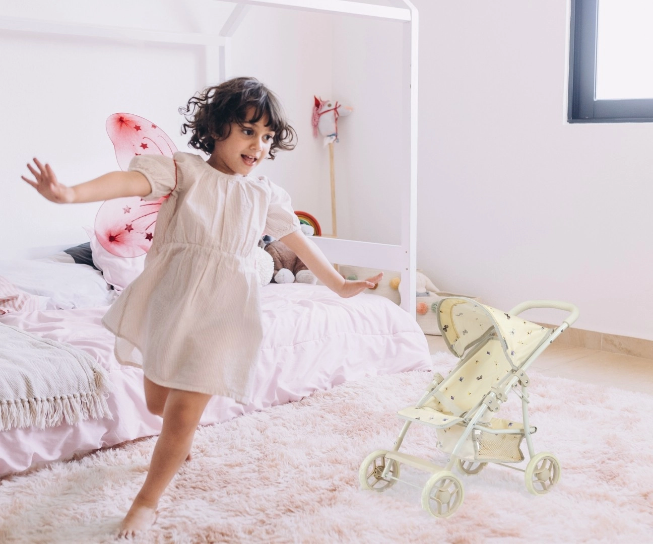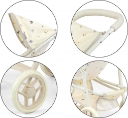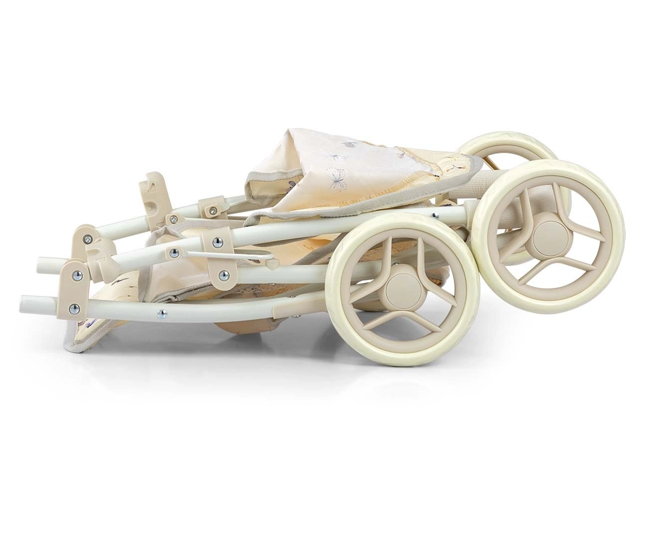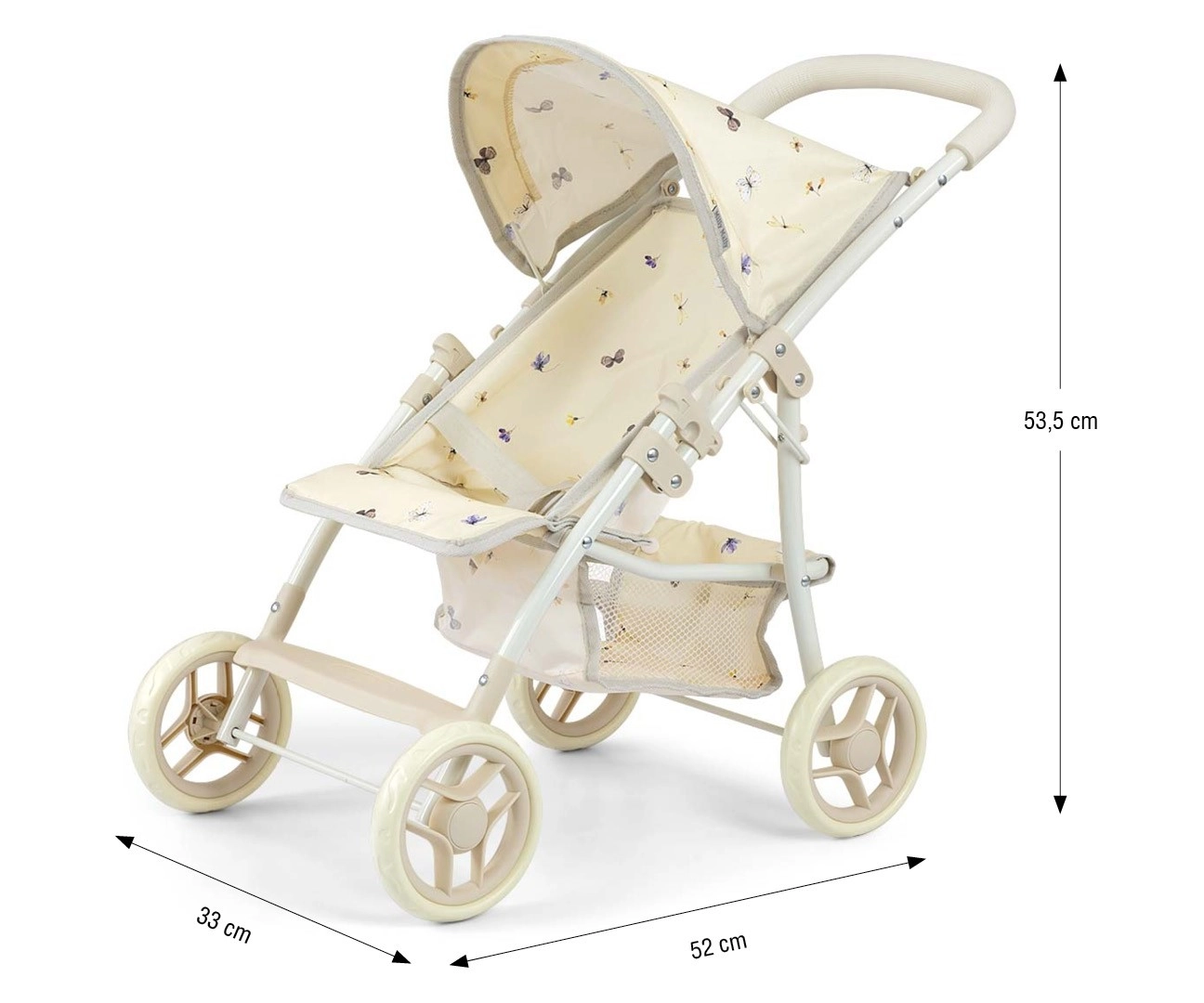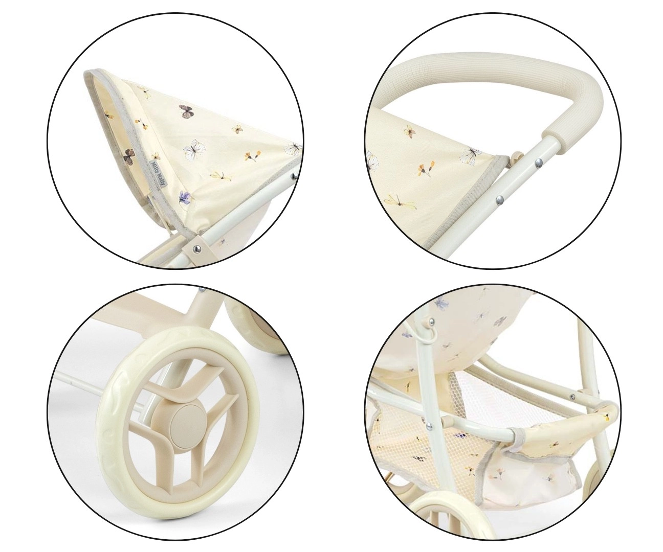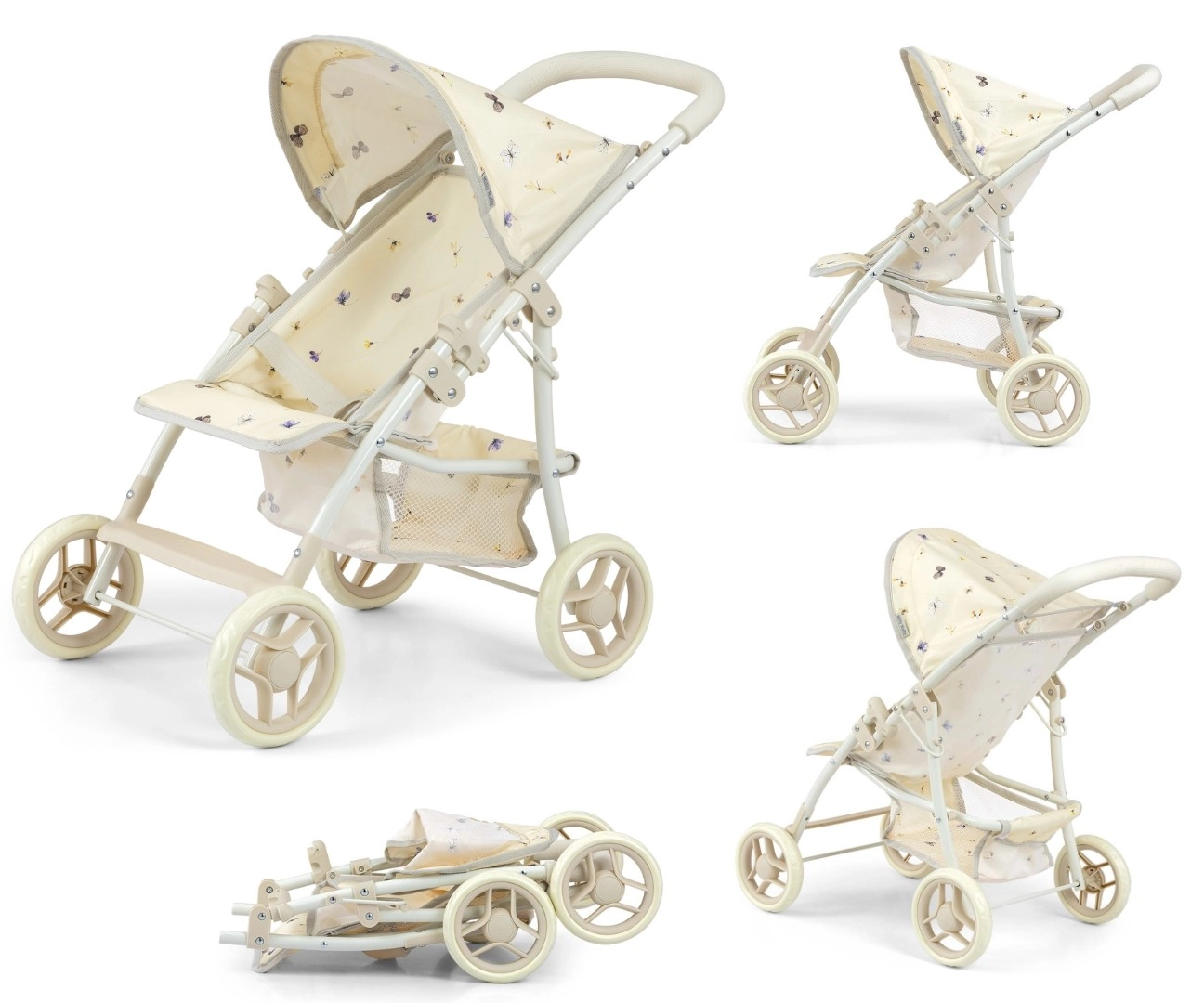 Das klappbare Verdeck schützt die Puppe, und das geräumige Netz unter dem Sitz bietet Platz für Fläschchen, Kleidung und weiteres Zubehör.