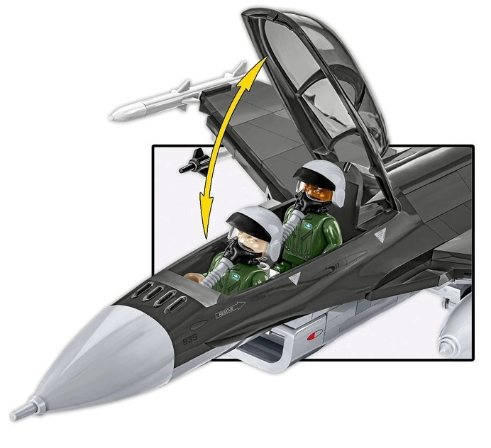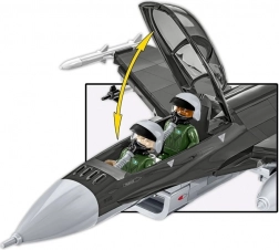 Enthalten sind zwei Minifiguren in Fluganzügen mit Helmen und Sauerstoffmasken, fein ausgearbeitete Lenkwaffen AIM-120 AMRAAM und AIM-9 Sidewinder sowie ein stabiler Ständer mit Modellname und Maßstab. Eine übersichtliche Schritt-für-Schritt-Anleitung begeistert junge Baumeister wie erfahrene Modellbauer.
