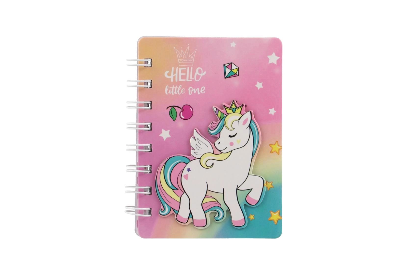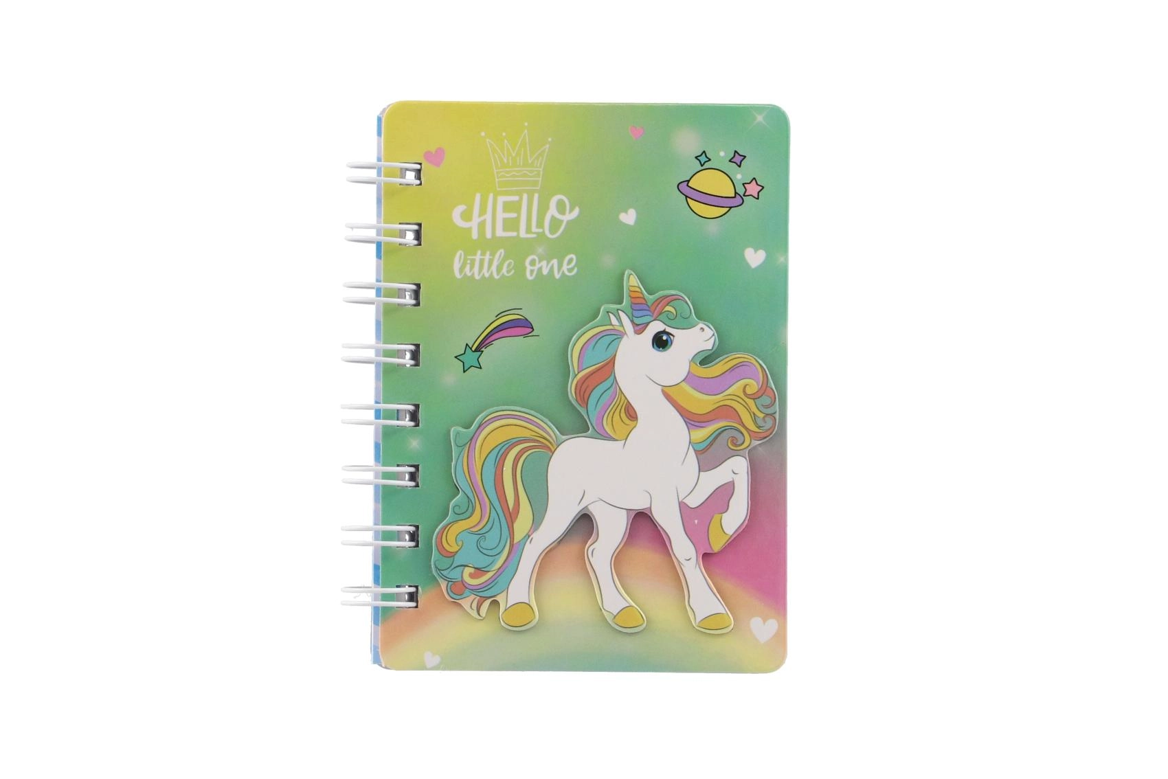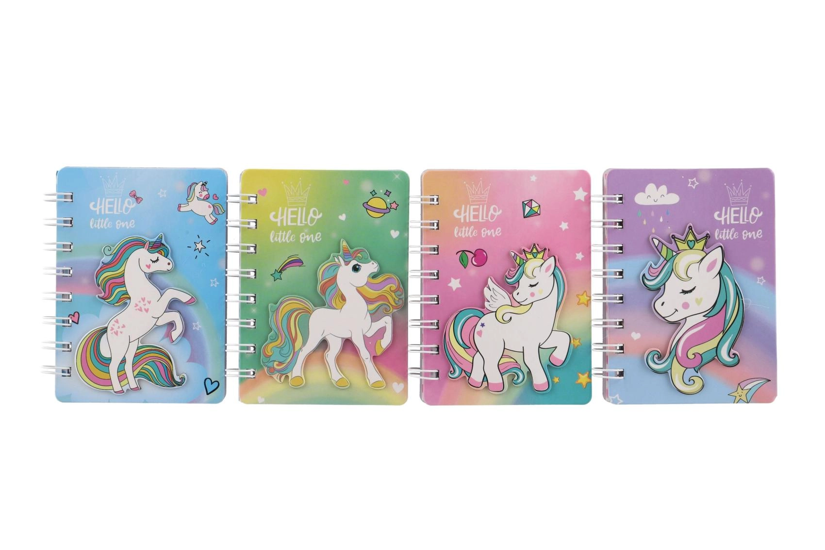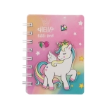 Entdecken Sie den zauberhaften Notizblock mit Einhornmotiv, der mit seinem verspielten Regenbogen-Look und der praktischen Ringbindung überzeugt. Perfekt zum Schreiben von Notizen, Zeichnen und Festhalten von Ideen – jederzeit und überall. Das kompakte Maß von 9,5 × 12 cm sorgt dafür, dass er stets griffbereit ist.