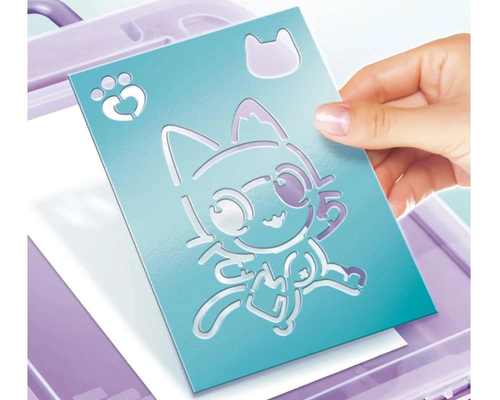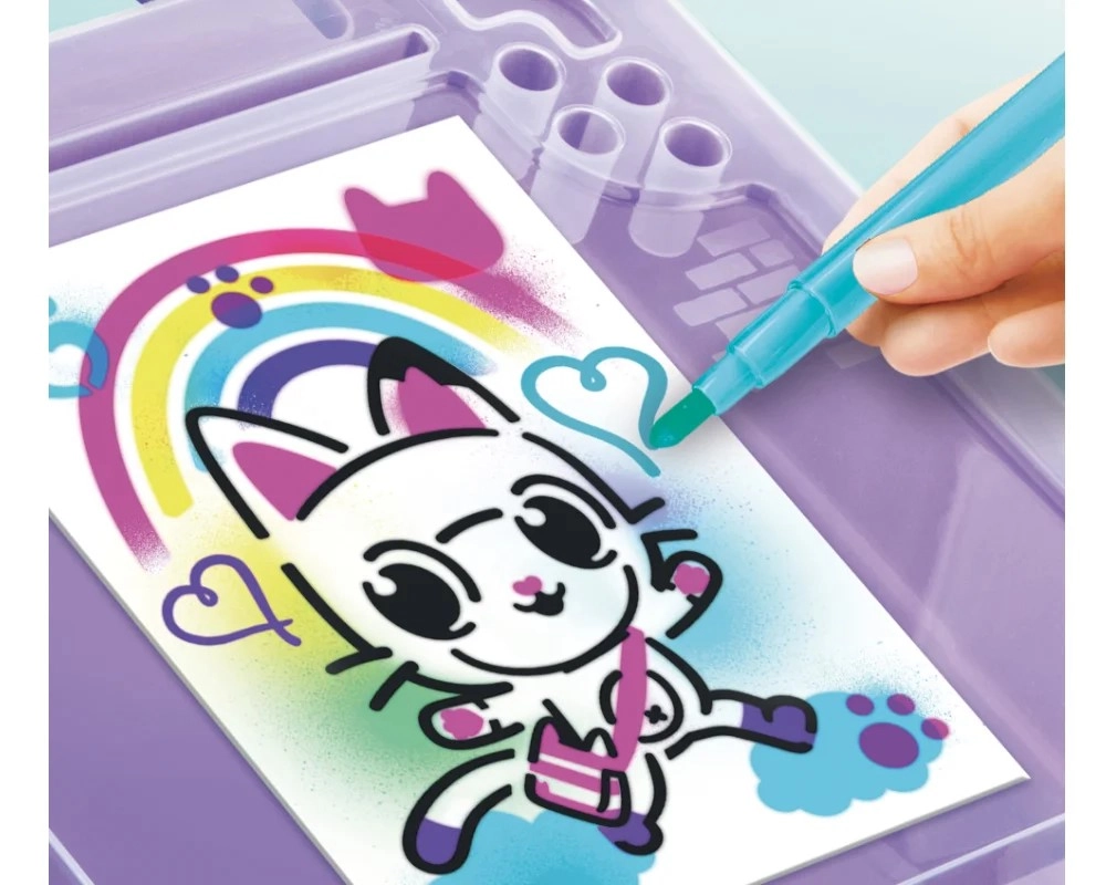 Dieses tragbare Kreativset ist ein tolles Geschenk für kleine Künstler, die Farben und Fantasie lieben. Einfach den Stift in das Gerät einsetzen, die Taste drücken und sprühen – die einfache Bedienung ist auch für jüngere Kinder geeignet. Das von Gabby’s Katzenhaus inspirierte Design begeistert alle Fans der niedlichen Katzenfiguren.