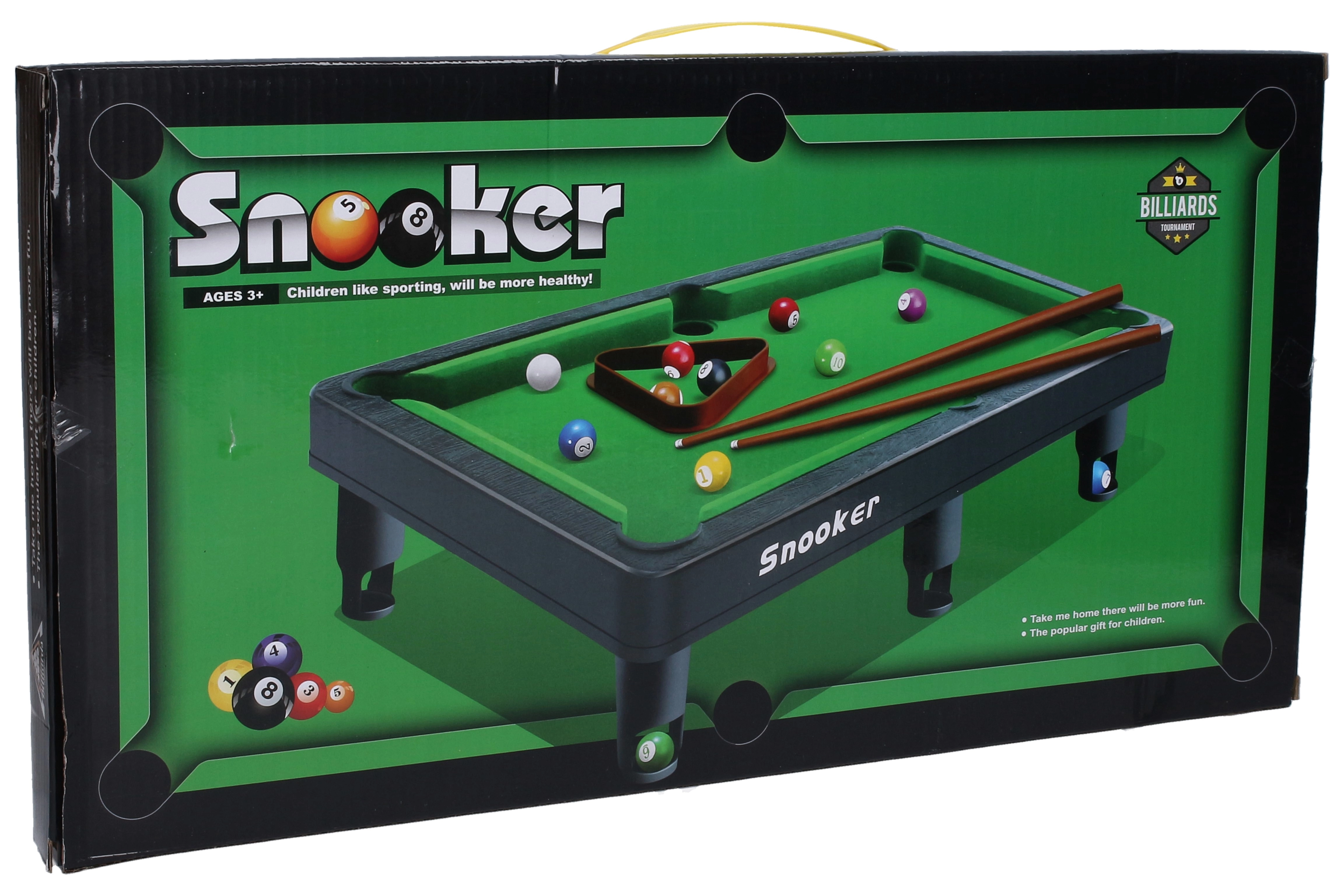 Kompakter Tisch-Billard für den Heimspaß mit den Maßen 45 × 25 cm – ideal für Kinder und Erwachsene. Im Lieferumfang enthalten sind ein Tisch, ein komplettes Kugel-Set und 2 Queues, sodass Sie sofort losspielen können.