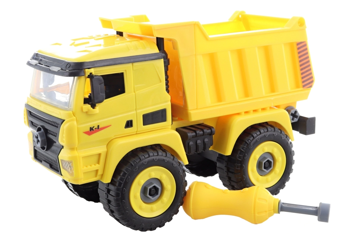 Dieser schraubbare Kipper bietet Kindern großen Spielspaß und unterstützt zugleich praktische Fähigkeiten. Mit dem beiliegenden Kunststoff-Schraubendreher können Kinder die einzelnen Teile auseinandernehmen und wieder zusammenbauen, die Hand-Auge-Koordination trainieren und grundlegende Konstruktionsprinzipien erlernen. Das Spielzeug besteht aus strapazierfähigem Kunststoff und ist dank abgerundeter Kanten für kleine Kinder geeignet.