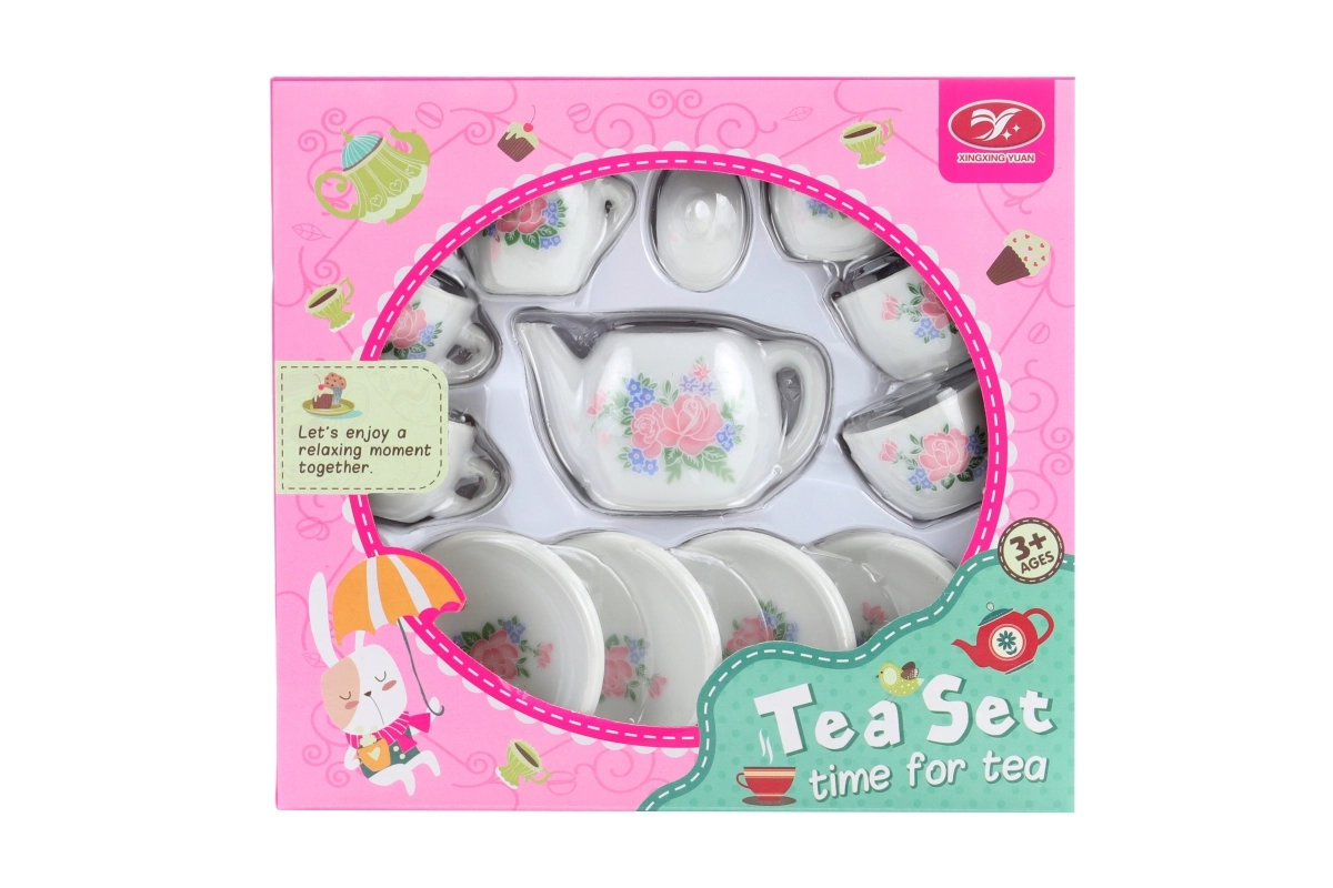 Das niedliche Porzellan-Teeset mit Röschen begeistert alle kleinen Gastgeberinnen. Das Set enthält 4 Tassen mit Untertassen, eine Kanne und eine Zuckerdose – ideal für das Spielen von Teestunden. Die kompakte Verpackung und die hochwertige Verarbeitung aus Porzellan sorgen für ein elegantes Erscheinungsbild und eine lange Lebensdauer. Geeignet für Kinder ab 3 Jahren.