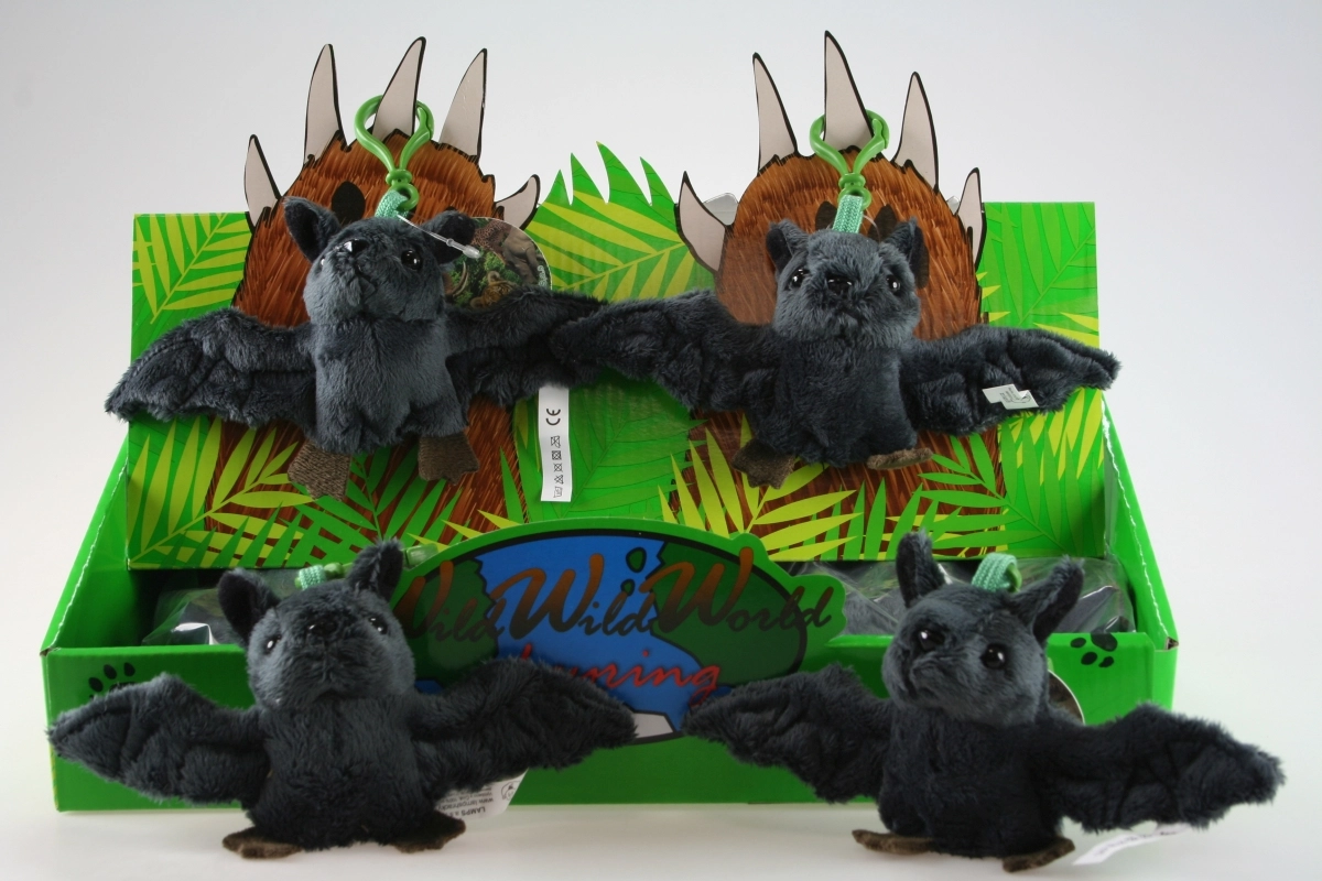 Dank der kompakten Größe und einer Flügelspannweite von ca. 18 cm ist die Fledermaus ausreichend auffällig, dabei jedoch leicht zu tragen. Die weiche Ausführung ist angenehm zu berühren und erfreut jeden Fan von Tiermotiven.