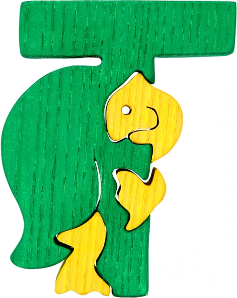 Der Einlegebuchstabe T mit kleinem Schildkrötenmotiv ist ein ideales Hilfsmittel für die erste Begegnung mit dem Alphabet. Die Teile greifen sanft ineinander und das robuste Design aus Massivholz hält dem täglichen Spiel stand. Die Oberfläche ist mit kinderfreundlichen, sicheren Farben behandelt.