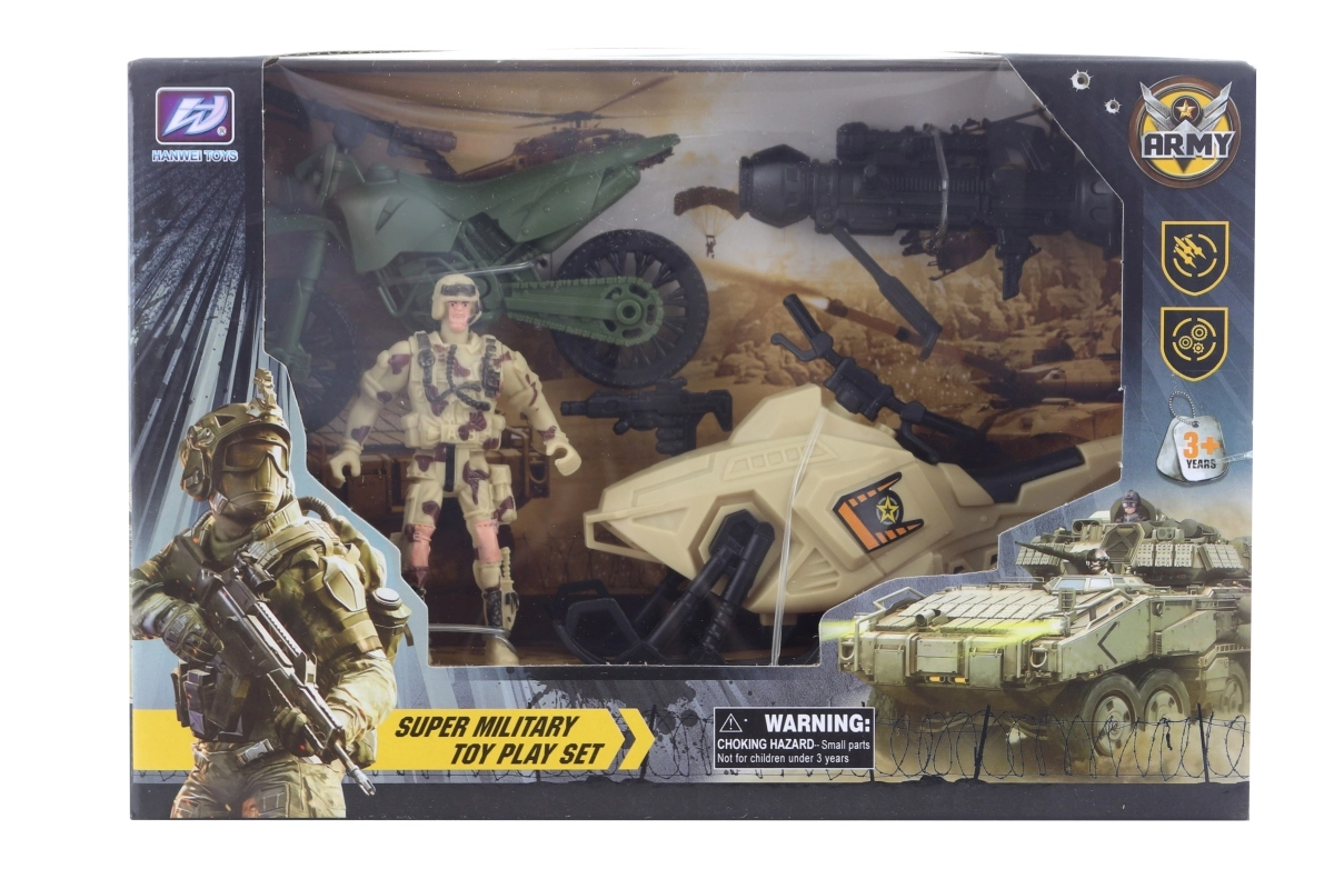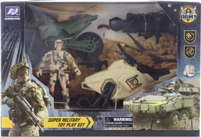 Dieses militärische Spielset aus Kunststoff mit Roller bietet Kindern jede Menge actionreichen Spielspaß. Dank des stabilen Materials eignet es sich ideal für den täglichen Gebrauch und fördert sowohl die Vorstellungskraft als auch die motorischen Fähigkeiten. Die praktische Verpackung in einer Schachtel macht es zu einem tollen Geschenk.