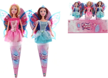 Elegante Accessoires wie Krone und Ohrringe verleihen der Puppe einen märchenhaften Charme. Die Puppe besteht aus robustem Kunststoffmaterial, während der Kegel aus Papier ist – perfekt als Geschenkverpackung.