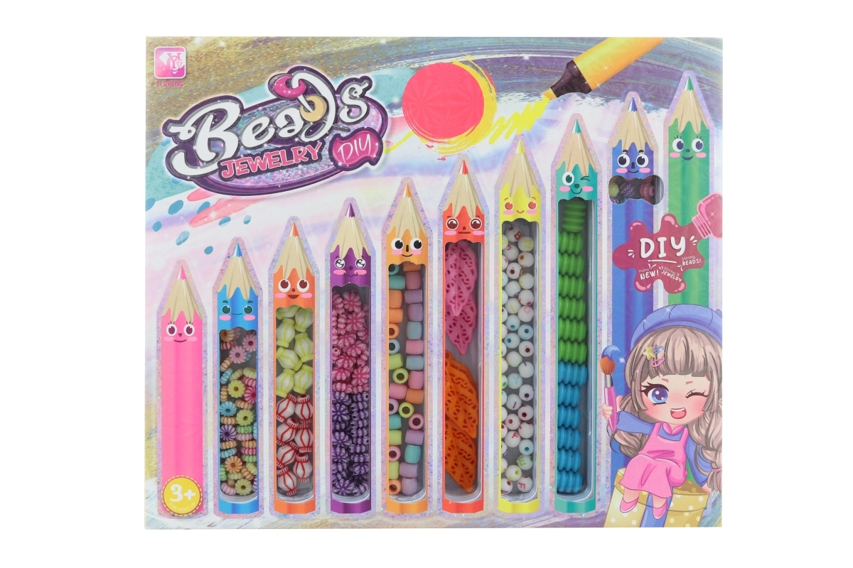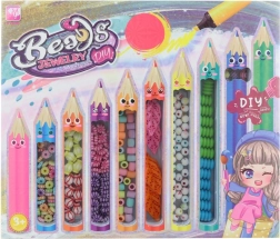Unterstützen Sie die Fantasie und Geduld der Kinder mit einem farbenfrohen Perlen-Set in einer originellen Buntstift-Verpackung. Dank der vielfältigen Formen und Größen erstellen Kinder ganz einfach Halsketten, Armbänder oder Anhänger und entwickeln zugleich Feinmotorik und Kreativität.