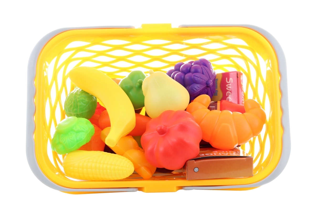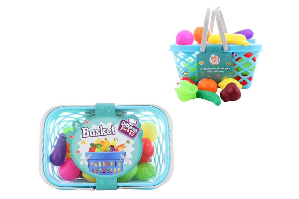 Ein Korb voller Obst und Gemüse regt die Vorstellungskraft an, fördert die Kommunikation und vermittelt Kindern Grundlagen des Einkaufens und Kochens.