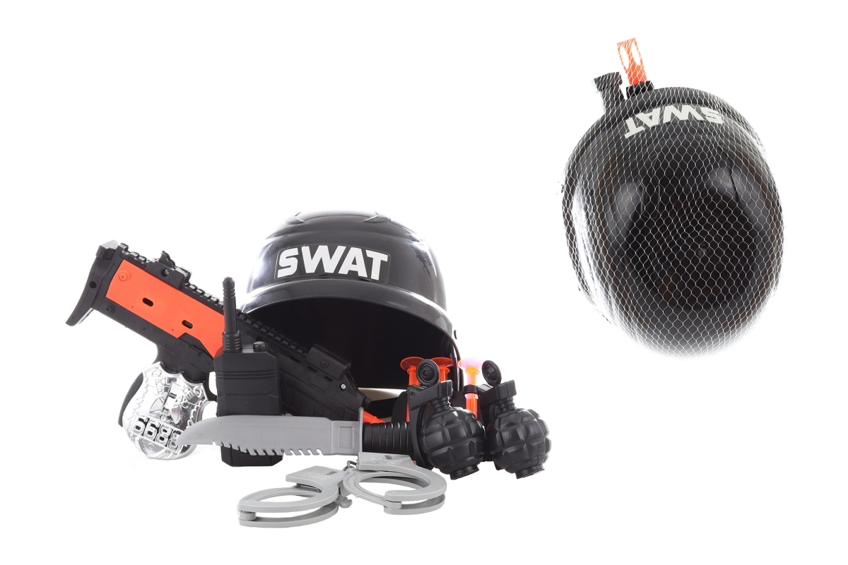 Komplettes Polizeiset für kleine Helden enthält Helm, Pistole, Patronen, Handschellen, Messer, Funkgerät, Abzeichen und Granaten. Ideal für kreatives Spielen und zur Förderung der Fantasie. Leichtes Kunststoffmaterial, umfangreiches Zubehör und sichere Ausführung für Kinder ab 3 Jahren.