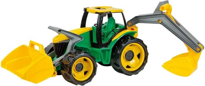 Kindertraktor mit Frontschaufel und Heckbagger für kreatives Spiel und Förderung der Motorik. Traktor bietet realistische Details und ein langlebiges Kunststoffdesign, das lange Spielzeit standhält.
