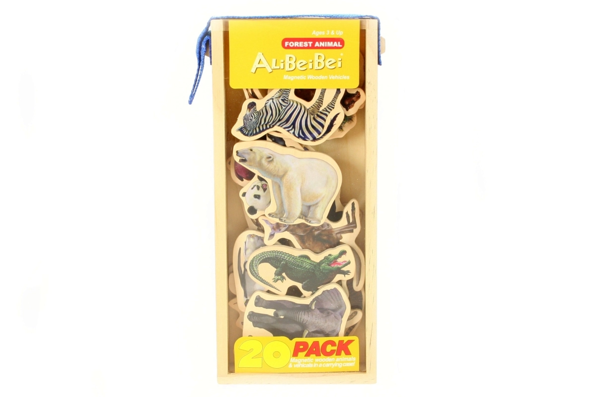 Das Komplettset ist in einer stabilen Holzbox mit transparentem Deckel und praktischem Griff für einfachen Transport untergebracht. Ideal zum Spielen zu Hause, für den Kindergarten oder unterwegs. Kinder trainieren das Erkennen von Tieren, den Wortschatz, das Sortieren und die Hand-Auge-Koordination.