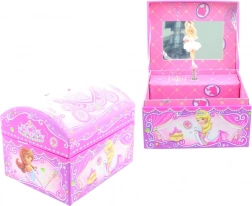 Dieses entzückende Schmuckkästchen mit Spieluhr bereitet jedem Kind Freude, das Ordnung in seinen Schätzen liebt und magische Details zu schätzen weiß. Beim Öffnen des Deckels dreht sich die Ballerina im Spiegel und eine Melodie ertönt, die ein freudiges Lächeln zaubert.