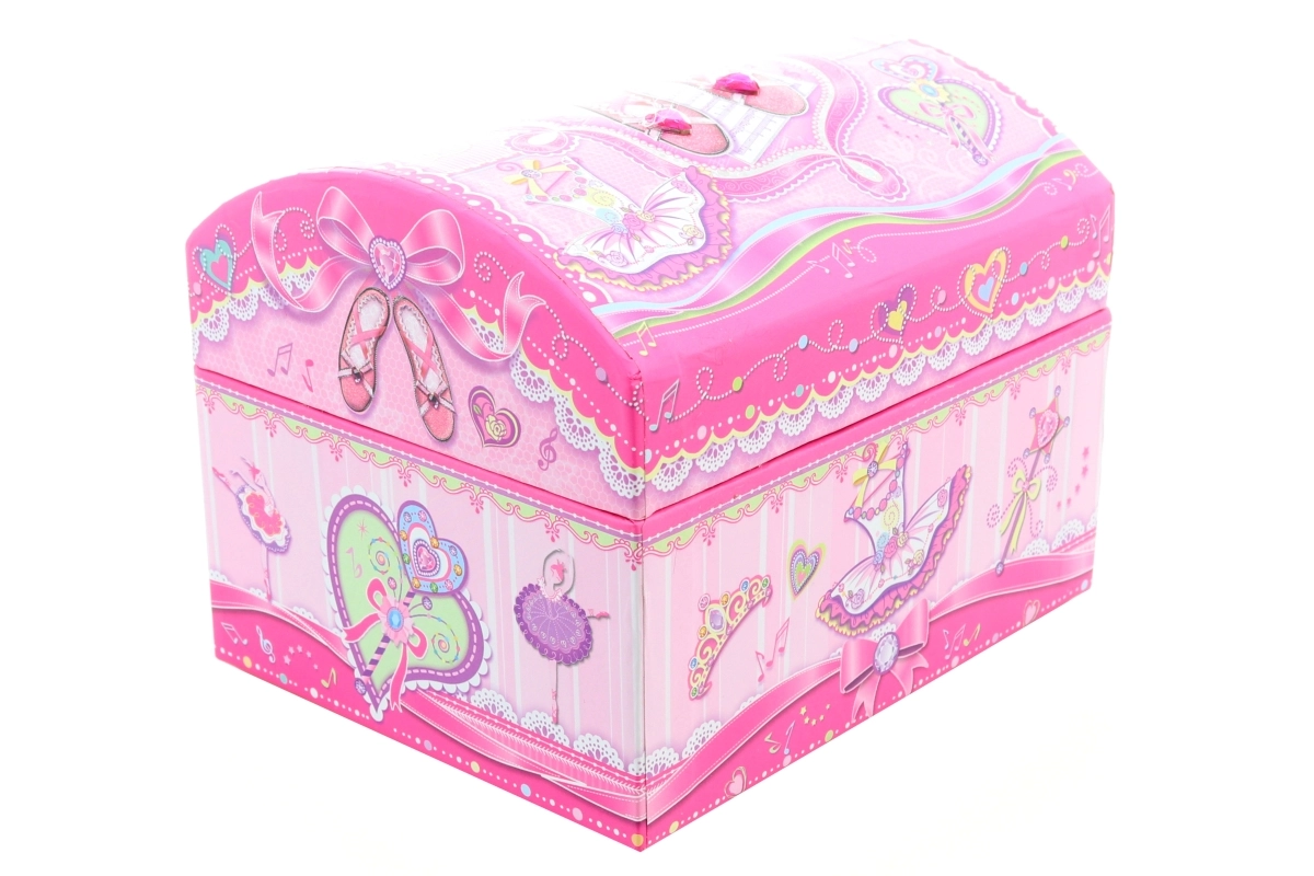 Im Inneren befinden sich ein praktischer Spiegel und Stauraum für Kleinigkeiten. Die äußeren Ballettmotive machen sie zu einer schönen Zierde für jedes Zimmer.
