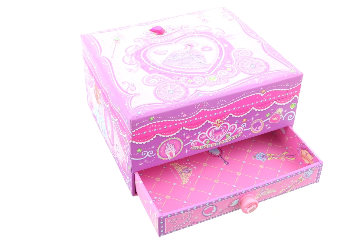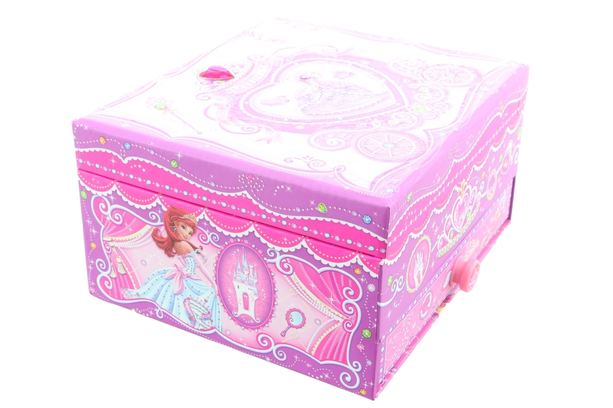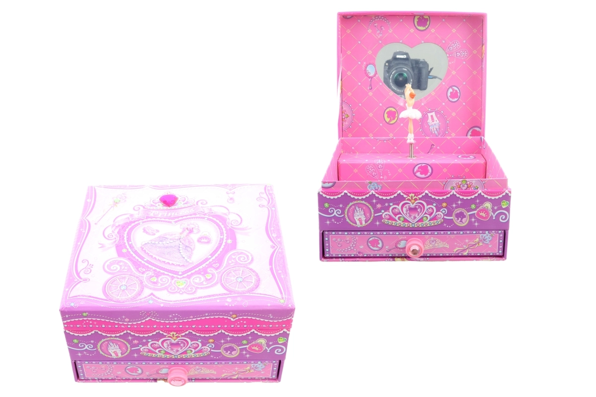 Das bezaubernde Musikschmuckkästchen mit Prinzessinnenmotiv bereitet bei jedem Öffnen Freude. Nach dem Aufziehen des Schlüsselchens dreht sich die Ballerina vor dem Spiegel, und eine sanfte Melodie schafft eine märchenhafte Atmosphäre. Das Schmuckkästchen bietet eine übersichtliche Aufbewahrung für kleine Schmuckstücke und geheime Schätze.