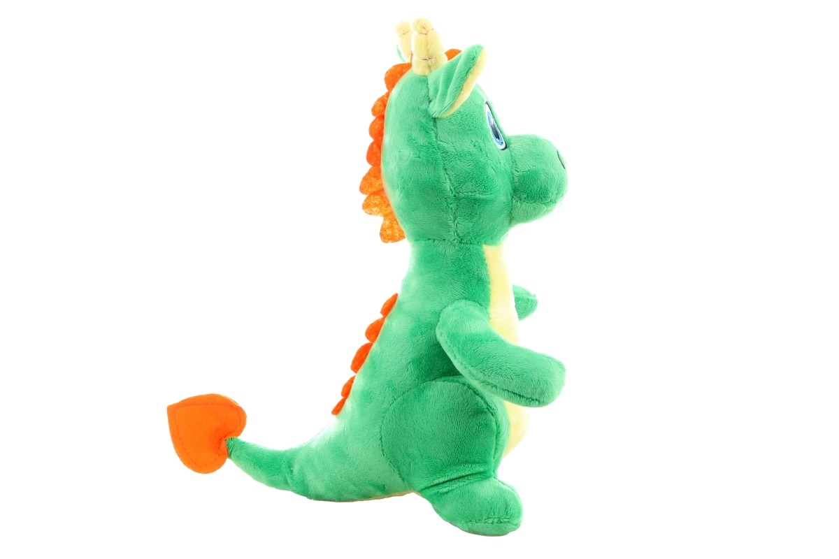 Dieser grüne Plüschdrache mit kontrastierendem Bäuchlein und liebevollen Details wird schnell zum Lieblingsbegleiter jedes Kindes. Dank der superweichen Oberfläche und der flauschigen Füllung ist er ideal für beruhigende Umarmungen und sanftes Spielen im Laufe des Tages.