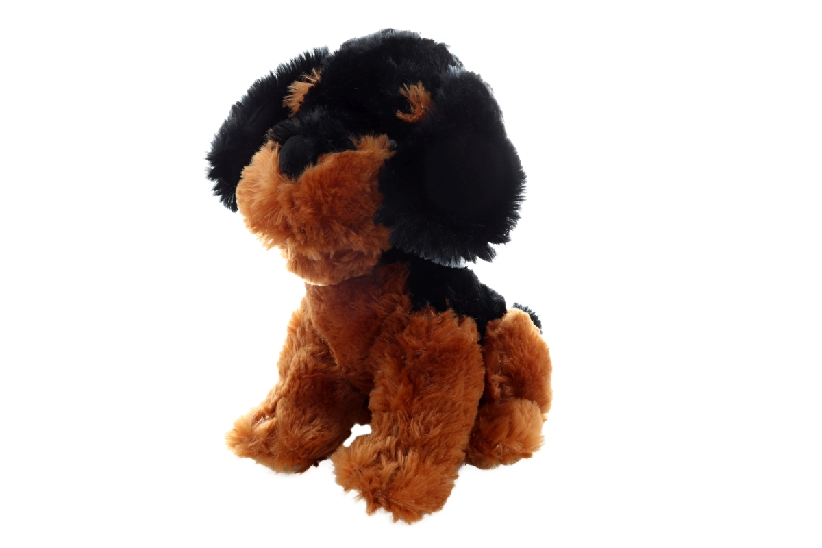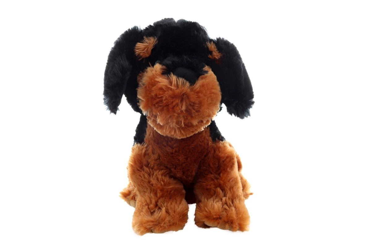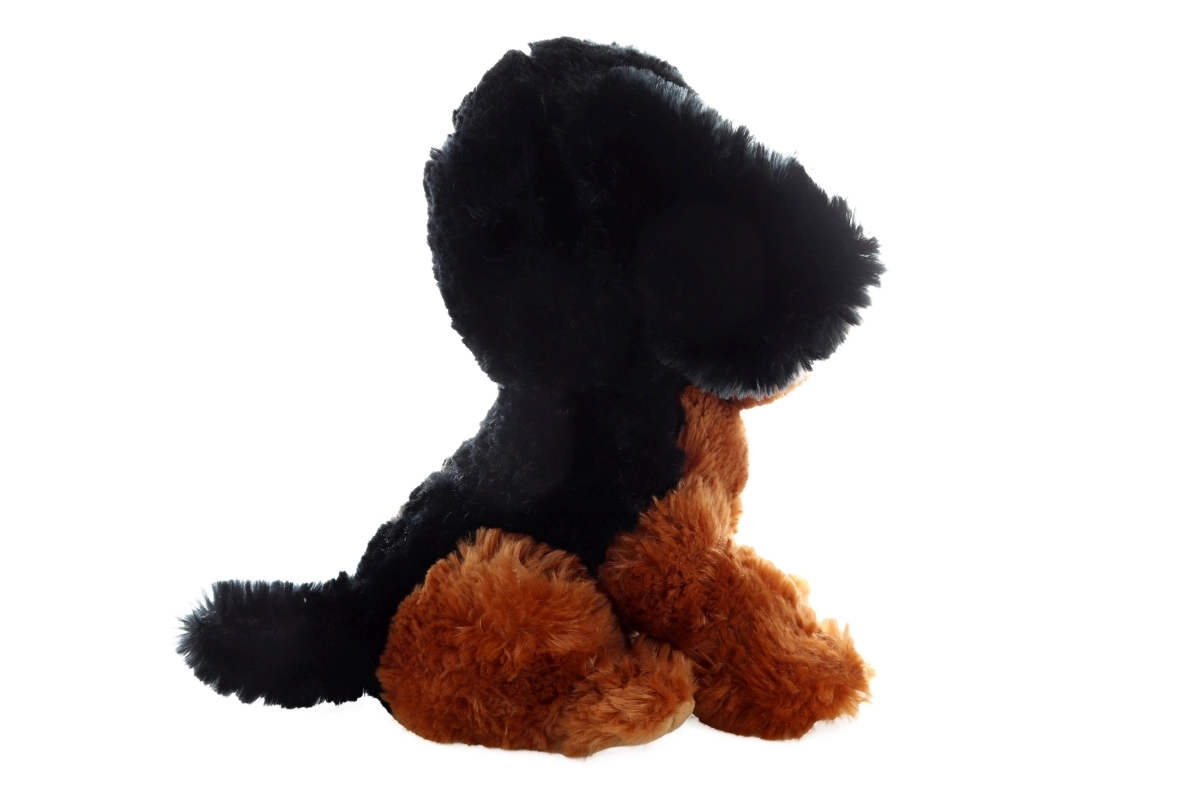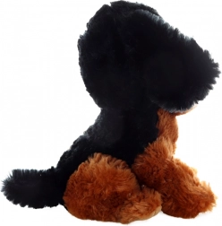 Dieser dunkle Plüschhund in sitzender Position verzaubert mit seinem weichen, flauschigen Fell und dem freundlichen Ausdruck. Er besteht aus hochwertigen, angenehm zu berührenden Materialien, die zum Kuscheln einladen und für Komfort beim Einschlafen sorgen.
