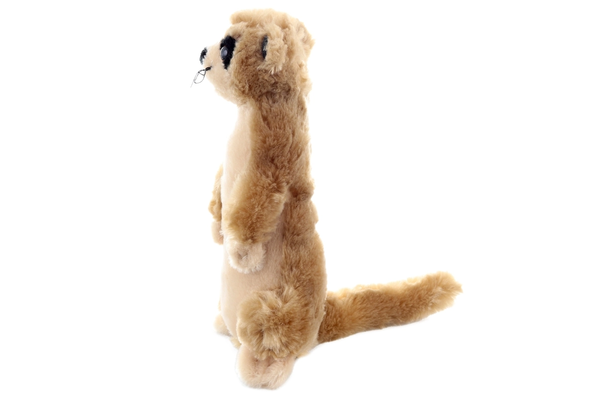 Dieses Plüsch-Erdmännchen überzeugt mit einem weichen, samtigen Material, das direkt zum Kuscheln einlädt. Durch das realistische Erscheinungsbild mit typischen dunklen Augenringen und der aufrechten Haltung wirkt es sowohl niedlich als auch authentisch.