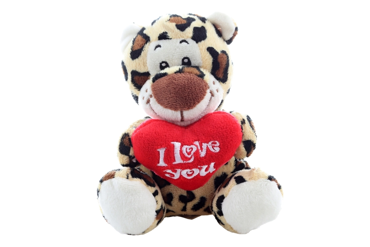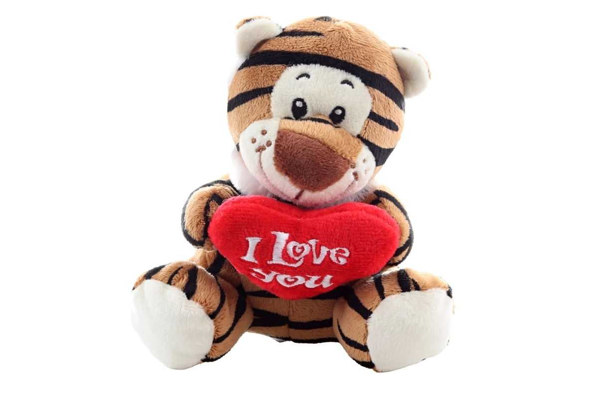 Das auffällige rote Herz mit gesticktem Schriftzug verleiht dem Spielzeug Charme und macht es zum perfekten Liebesgeschenk.