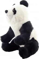 Plastikaugen, runde Öhrchen und präzise Nähte verleihen dem sitzenden Panda ein realistisches Aussehen.