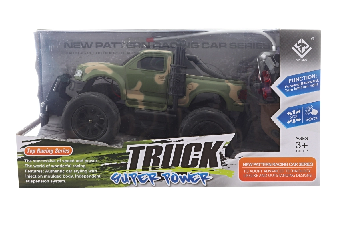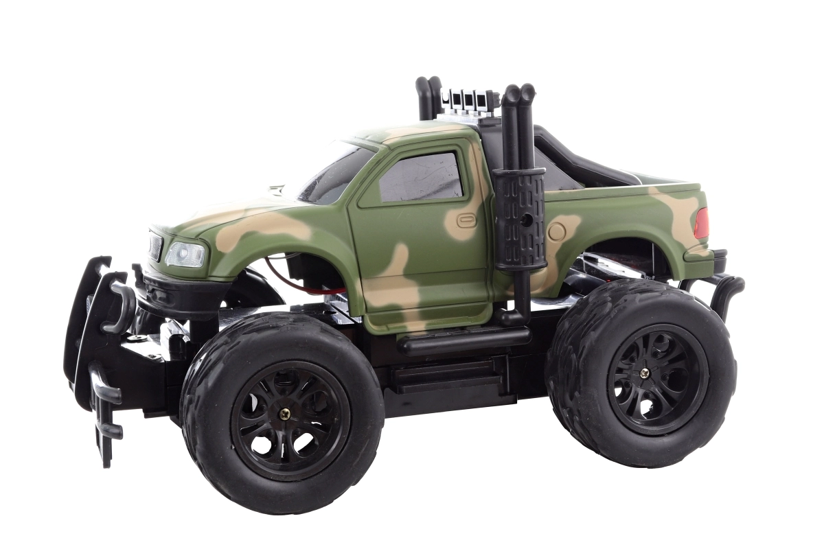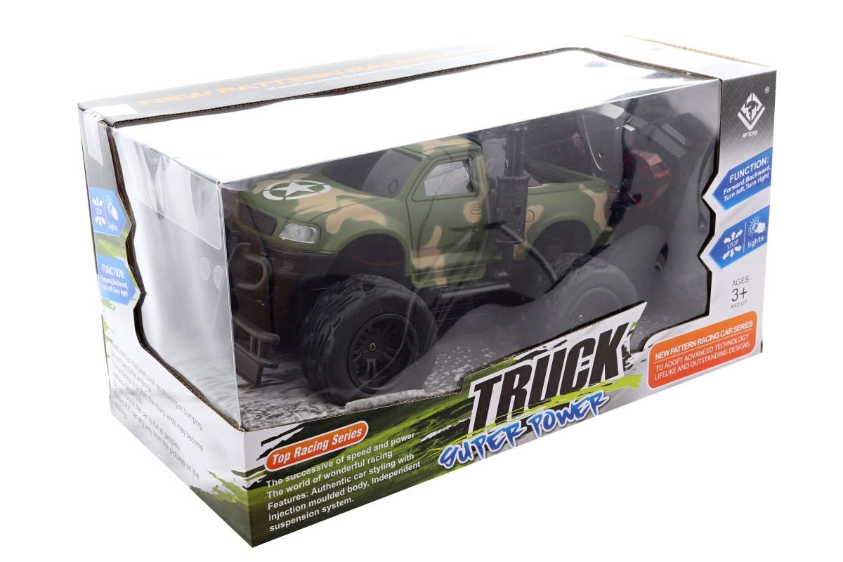 Starten Sie ins Offroad-Vergnügen mit dem militärischen RC-Jeep, der mit Tarn-Design, höhergelegtem Fahrwerk und robusten Rädern begeistert. Dank Frontscheinwerfern macht das Fahren auch in der Dämmerung Spaß, und die einfache Fernsteuerung ist perfekt für Einsteiger.