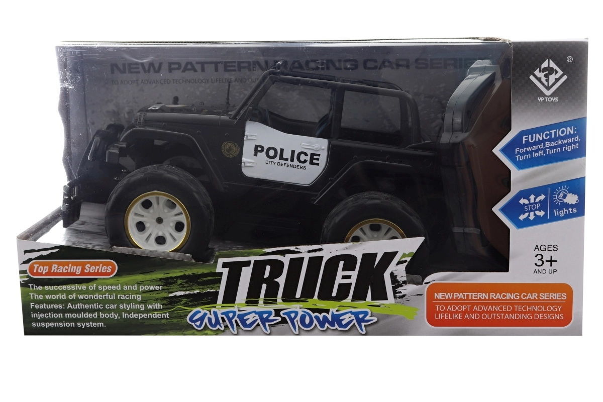 Das Polizei-RC-Auto im realistischen Offroad-Stil sorgt für spannende Unterhaltung für kleine Fahrer. Die Steuerung ist intuitiv und das Auto meistert verschiedene Untergründe, während die Scheinwerfer für einen attraktiven Effekt beim Fahren sorgen.
