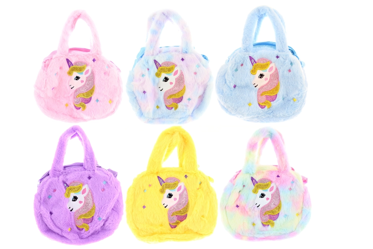 Diese superweiche Plüsch-Handtasche mit dem beliebten Einhornmotiv ist ein stylisches Accessoire für kleine und große Fans von Fantasie. Dank der kompakten Größe eignet sie sich perfekt für Kleinigkeiten wie Schlüssel, Geldbörse oder Telefon und bleibt dabei leicht und angenehm zu tragen.