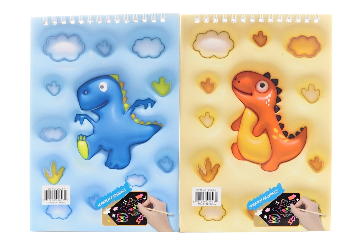 Entdecken Sie die Magie von Kratzbildern mit diesem praktischen Heft im Dinosaurierdesign. Nehmen Sie einfach den beiliegenden Holzstift und enthüllen Sie durch sanftes Abkratzen der schwarzen Schicht die leuchtenden Farben darunter. Hervorragend zur Förderung von Kreativität, Geduld und Feinmotorik.