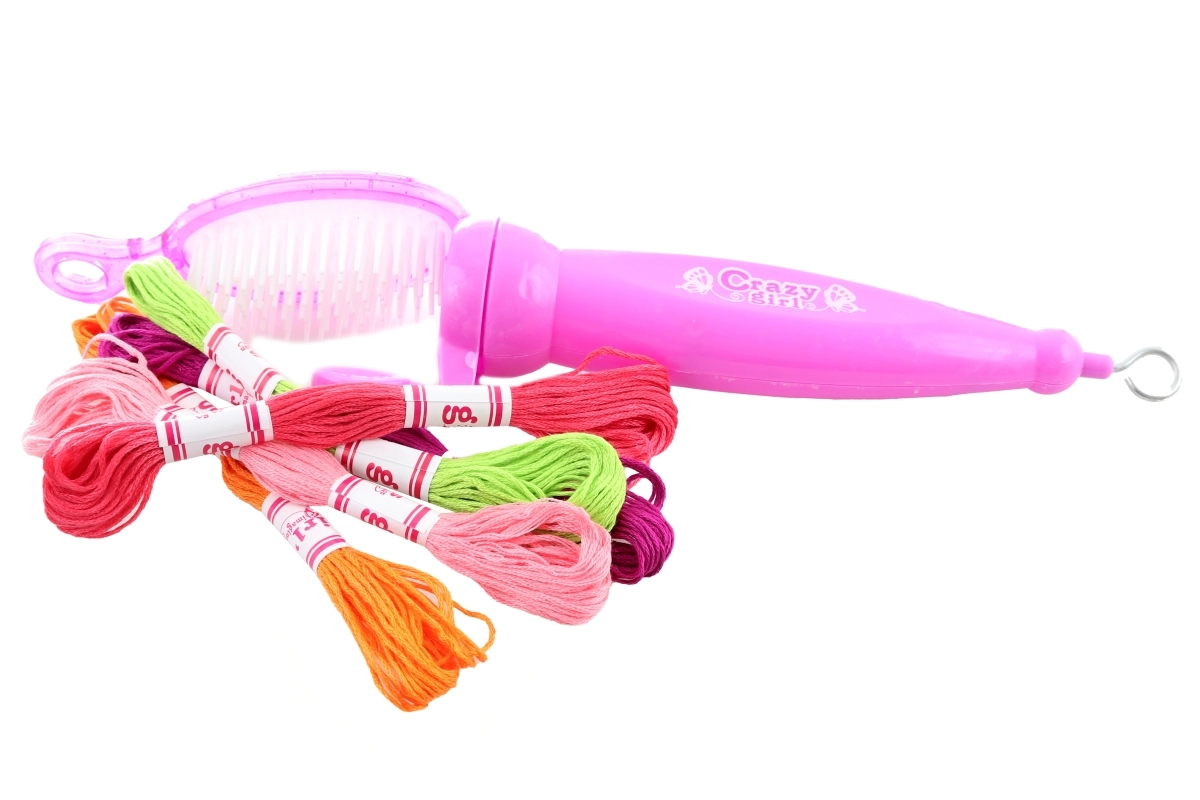 Die Bedienung ist leicht und intuitiv – einfach Perlen oder Faden einfädeln, eine Haarsträhne befestigen und flechten. Dank der kompakten Abmessungen lässt sich das Spielzeug bequem verstauen und transportieren.