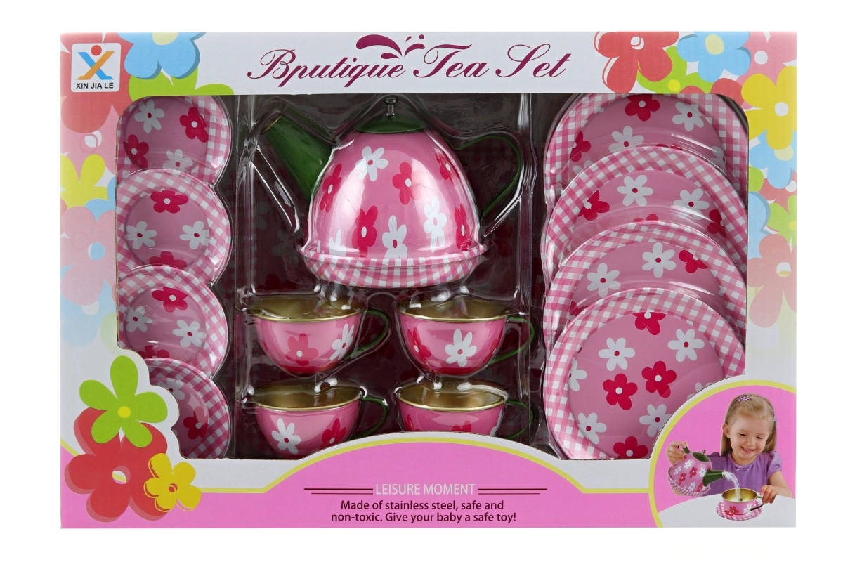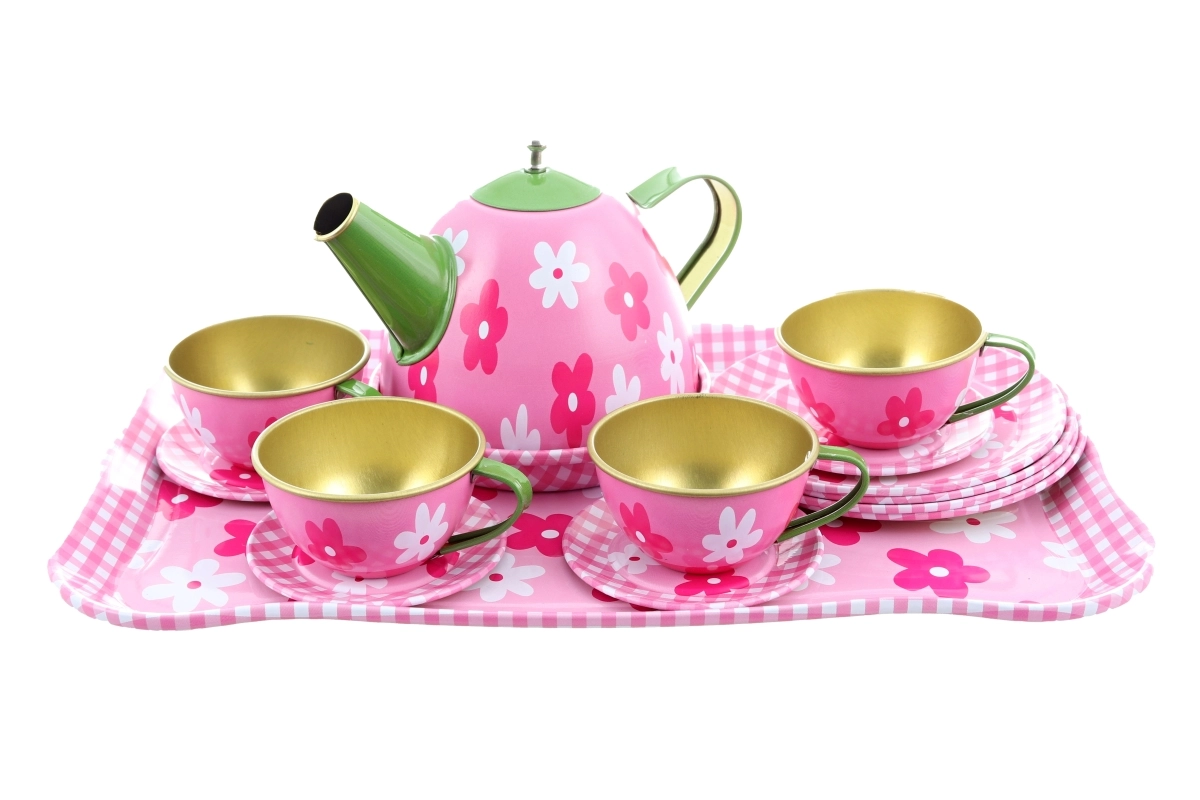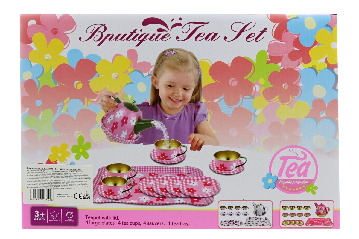 Veranstalten Sie eine zauberhafte Teeparty! Dieses Blech-Tee-Set mit Blümchen bietet Kindern ein authentisches Erlebnis beim Servieren von Tee, unterstützt Rollenspiel, die Entwicklung der Feinmotorik und soziale Kompetenzen. Dank stabilem Blech ist das Set robust und zugleich leicht, sodass kleine Hände es gut handhaben können.