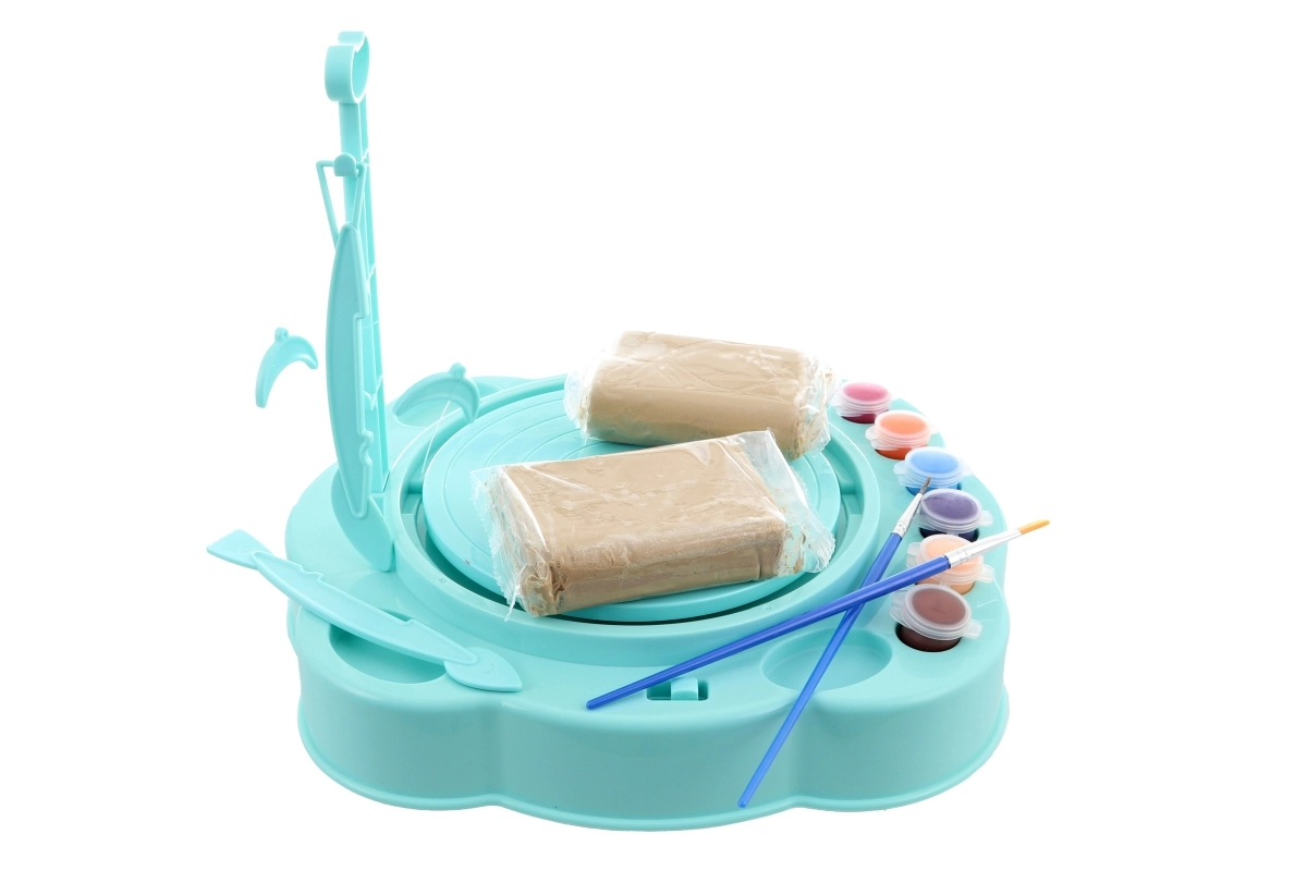 Entdecken Sie kreative Freude mit der türkisen Töpferscheibe für Kinder – die ideale Wahl für erste keramische Versuche und zur Förderung der Fantasie. Das Set enthält alles, was Sie zum Herstellen und Dekorieren eigener Werke benötigen. Einfache Bedienung, kreativer Spaß und komplettes Zubehör für sofortiges Gestalten.