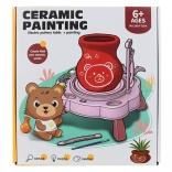 Töpferscheibe mit Füßchen, 2 Beutel Ton, 2 Pinsel, Farbpalette, kleine Accessoires, Anleitung