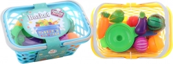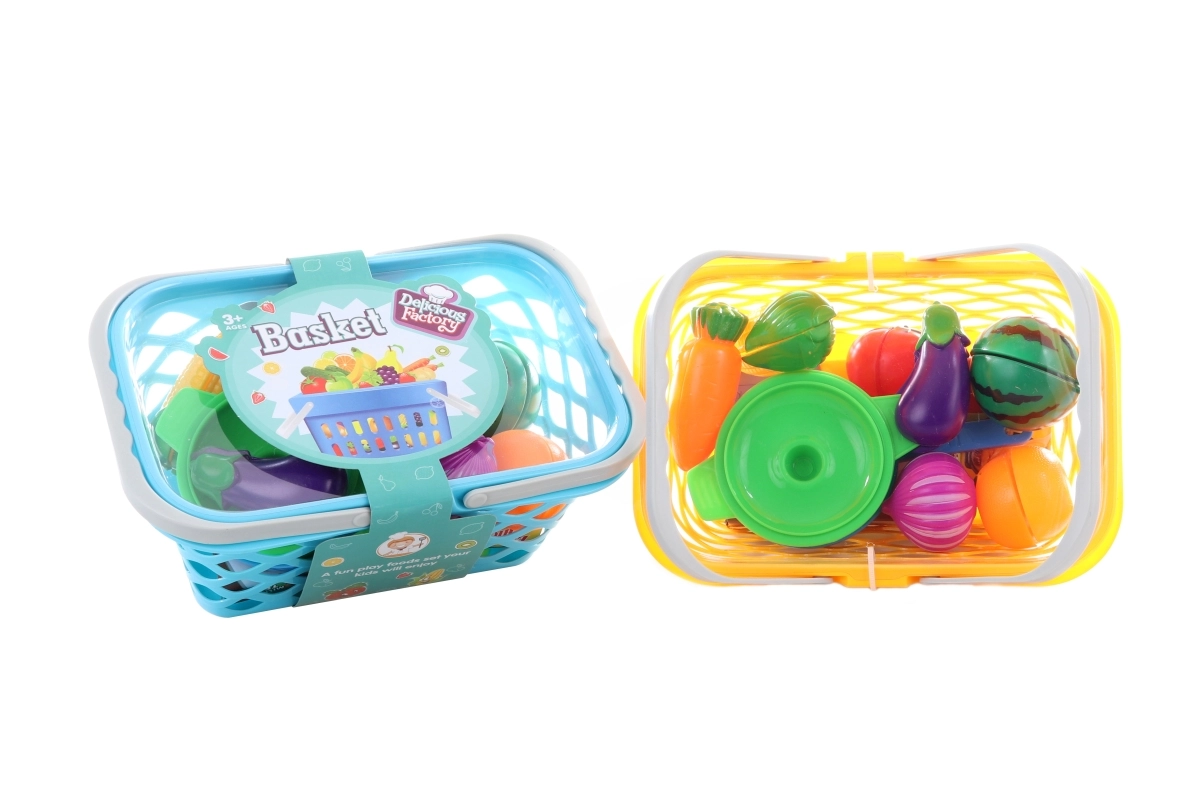 Entdecken Sie das komplette Set für kleine Köchinnen und Köche! Der Kunststoffkorb mit Griffen kann auch als Einkaufskorb verwendet werden und enthält alles Nötige fürs Kochspiel – von Obst und Gemüse über eine Schachtel mit Kaffee und Tee bis hin zu Schneidebrett und sicherem Messer. Die Lebensmittel sind mit Klettverschluss verbunden, sodass Kinder sie leicht „schneiden“ und wieder zusammenfügen können.
