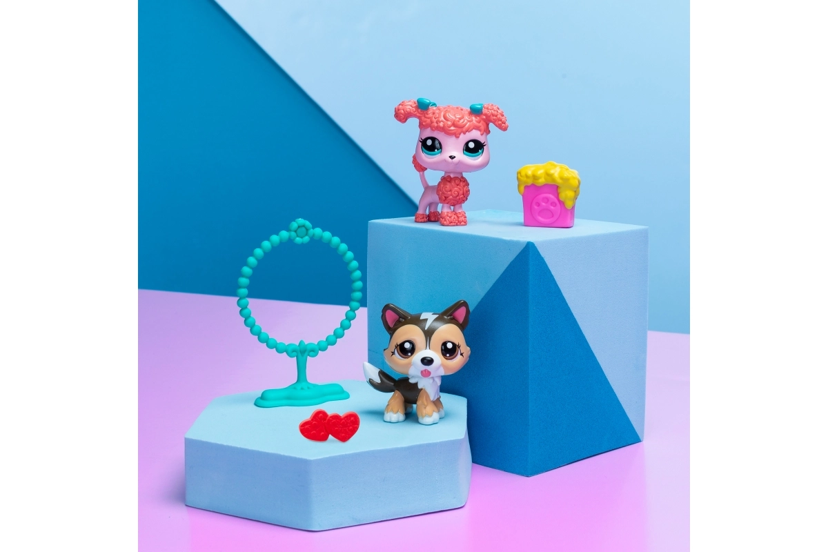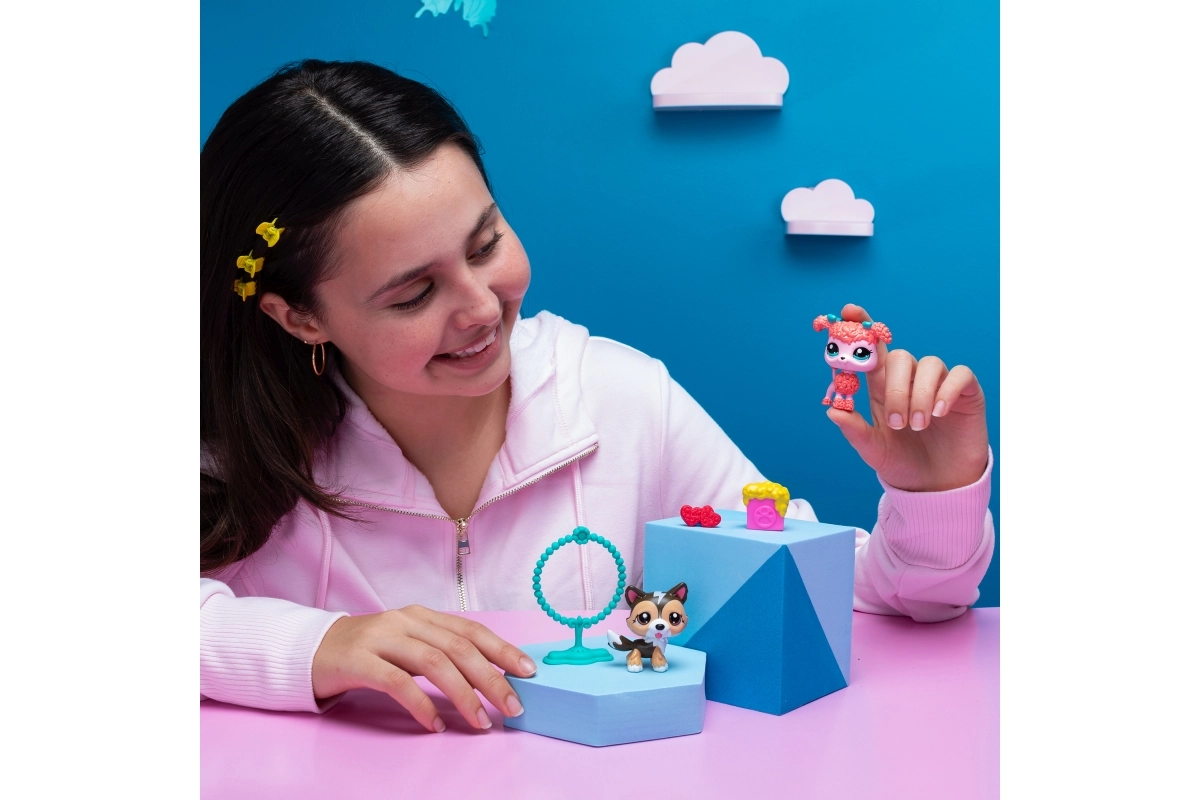 Das Set Jump n’ Joy bringt süße Welpen und einen blauen Sprungreifen. Trainieren Sie Tricks, stellen Sie Szenen nach und präsentieren Sie die Tierchen dank stabiler Standfüße.