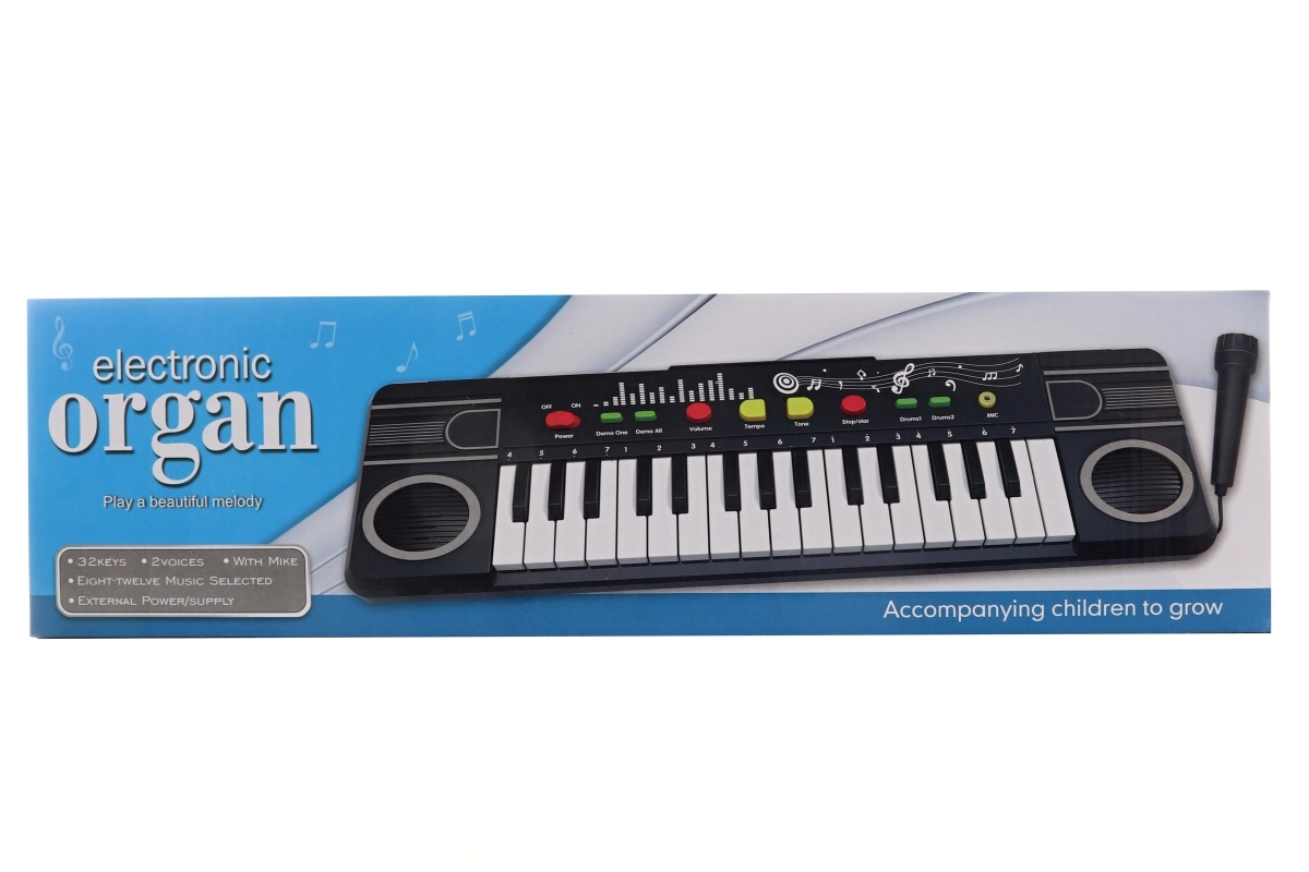 Ermöglichen Sie Kindern, Musik spielerisch zu entdecken. Dieses elektronische Kinderklavier bietet 32 Tasten für einfache Melodien, ein integriertes Mikrofon für die ersten Gesangsversuche und kompakte Abmessungen – ideal fürs Kinderzimmer und unterwegs.