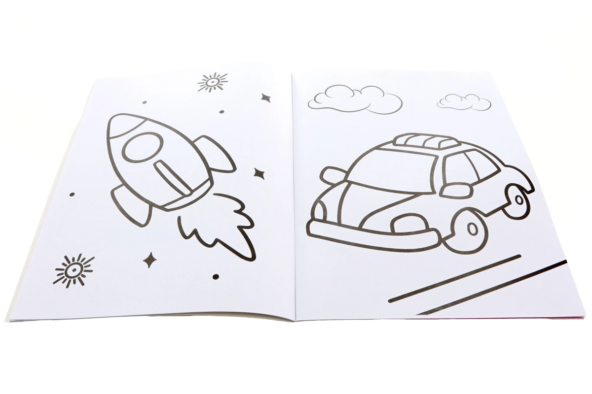 Entdecken Sie die Welt der Autos, Züge, Schiffe und weiterer Maschinen in thematischen Ausmalbildern, die Feinmotorik, Kreativität und Geduld fördern. Dank der beiliegenden Aufkleber können Kinder die Bilder verzieren und eigene Verkehrsszenen gestalten.