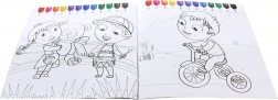5 beidseitige Ausmalblätter, 2 Stickerbögen