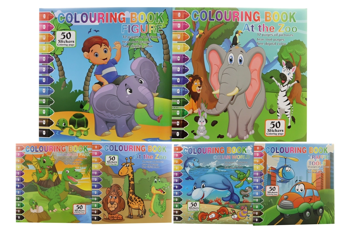 • 5 beidseitige Blätter – viele Bilder zum Ausmalen.