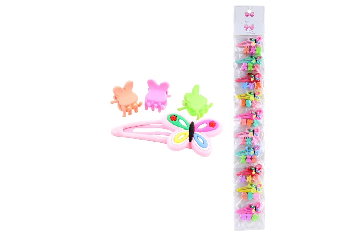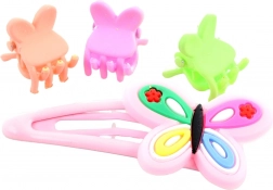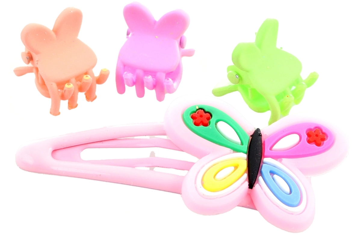 Kreieren Sie im Handumdrehen eine effektvolle und zugleich bequeme Frisur. Dieses Haarschmuck-Set kombiniert eine dekorative Spange mit Schmetterlingsmotiv und drei praktische Mini-Clips, die Strähnen an Ort und Stelle halten – ohne Ziepen und Haarbruch. Dank der kompakten Maße passt das Zubehör in die Handtasche und ist perfekt für unterwegs.