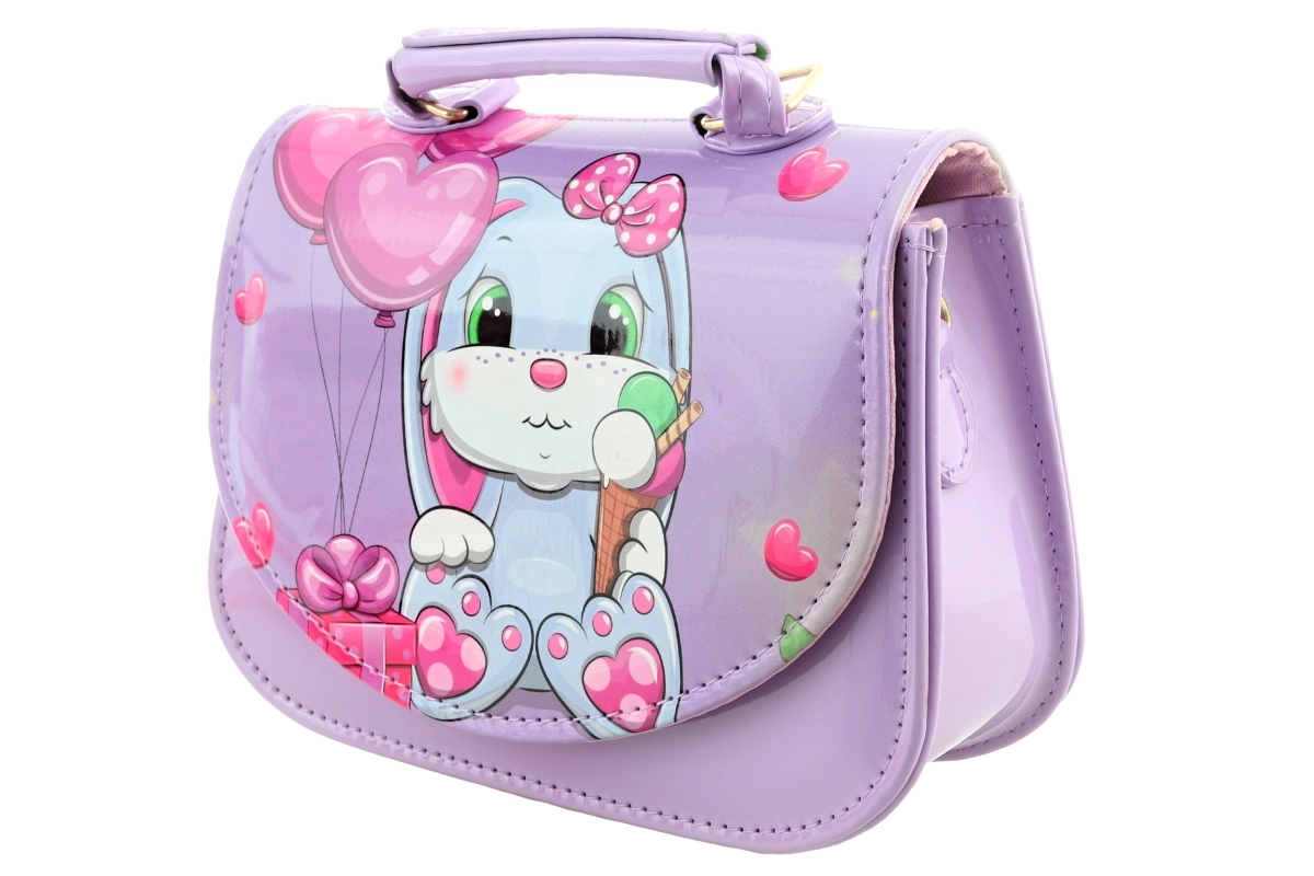 Glänzende Kinder-Umhängetasche mit Häschen, lila