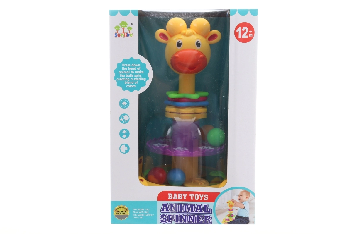 Dieses fröhliche Drehspielzeug in Giraffenform bringt Kindern Freude an Bewegung und Entdecken. Mit einem einfachen Druck auf den Kopf der Giraffe setzen sich die inneren Teile mit Kügelchen in Bewegung, was einen fesselnden visuellen Effekt erzeugt und zu wiederholtem Spielen motiviert. Der Kreisel ist ideal zur Förderung der Feinmotorik, der Hand-Auge-Koordination und der Farbwahrnehmung.