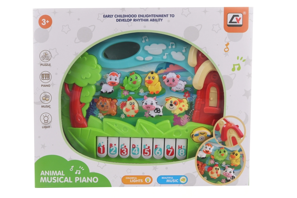 Dieses bunte Tierklavier bietet Kindern stundenlange kreative Unterhaltung und Lernen. Dank Melodien, Tiergeräuschen und Lichtern entwickeln Kinder spielerisch ihre Sinne und lernen, Klänge und Rhythmus zu unterscheiden. Der ergonomische Griff und die leichte Kunststoffkonstruktion erleichtern das Tragen und Spielen überall.